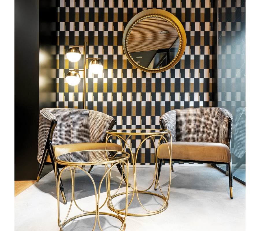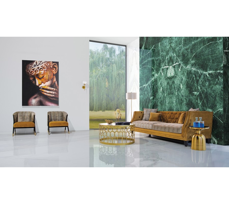Nábytok kolekcie Brilon predstavuje precízne a vysoko originálne dizajnové kúsky, ktoré sa oprávnene hlásia svojim prevedením k luxusnému a opluentnému art-deco nábytku. Prevedenie nábytku obsahuje materiály s vysokým leskom v elegantnej a luxusne pôsobiacej čiernej a zlatej farbe, ktoré spolu s ďalšími odtieňmi zlatej, žltej až po horčicovú vytvárajú luxusný zlato-čierny kontrast. Pri výrobe nábytku je použité tvrdé masívne drevo, ktoré je povrchovo upravené do čierneho lesklého vzhľadu. Nožičky sú vyzdobené ukočením v zlatej farbe a väčšina kolekcie sa nesie v horčicovom čalúnení v kombinácii s károvaným poťahom opierky. Nábytok tejto kolekcie sa nestratí ani v miestnostiach zariadených v trblietkavom luxusnom Glamour štýle pripomínajúcom Gatsbyho opulentne zariadený dom známy z rovnomenného filmu. K dokonalosti luxusného vzhľadu je odporúčané kombinovať nábytok s podlahami v čiernom lesklom prevedení s použitím luxusných materiálov ako napríklad mramor, onyx a prípadne aj lesklej veľkoformátovej dlažby. Nič na náhodu neponechá ani využitie epoxidového náteru podlahy, ktorý je možné farebne variovať vo veľmi jemých odtieňoch. K stenám tiež odporúčame pristúpiť precízne s využitím kvalitných tapiet s geometrickými obrazcami Art-deco respektíve je možné využiť aj štukové nátery s odtienmi zlatej a tmavo zelenej farby. Nábytok v art-deco štýle Brilon sa hodí aj do reprezentatívncyh priestorov firiem, lobby barov luxusných hotelov či do štýlových reštaurácii.