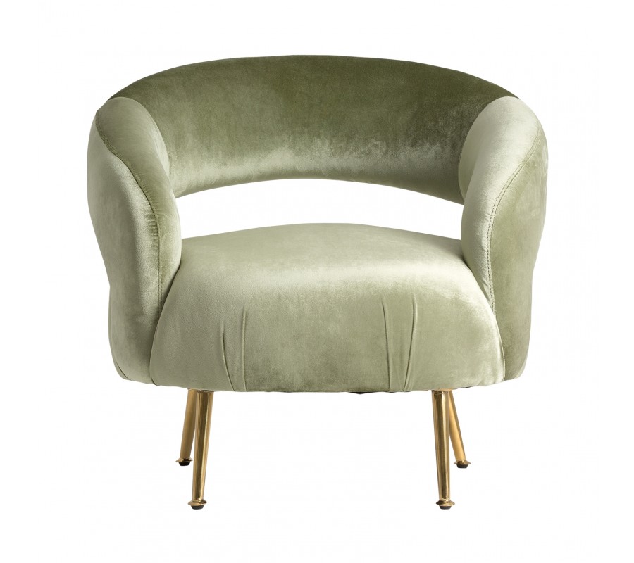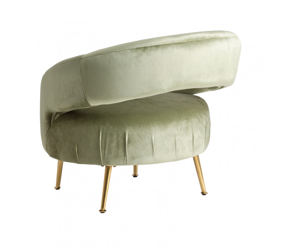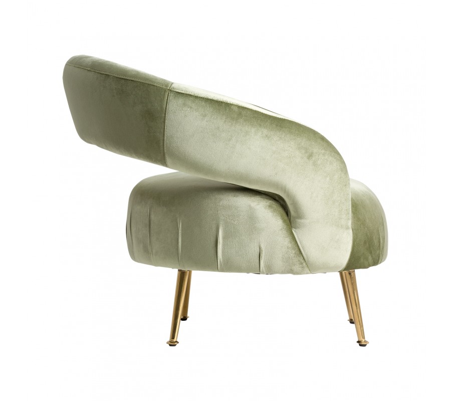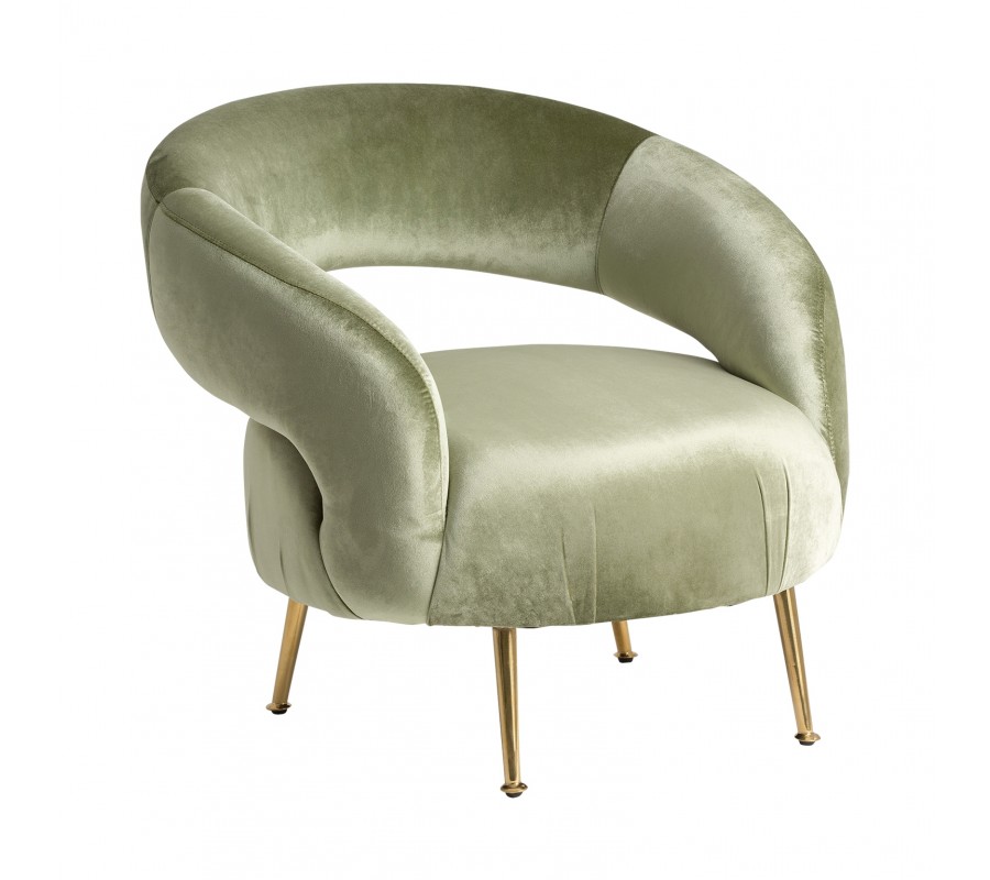 Štýlové kreslo typu Geseke osloví najmä milovníkov skutočne dizajnového nábytku. Zamatové čalúnenie v príjemných bledo zelených odtieňoch v kombinácii s oceľovými nožičkami v staro zlatej farbe pôsobí na oko majiteľa i hosťa veľmi príjemne a naozaj láka uvelebiť sa v tomto pohodlnom kúsku.