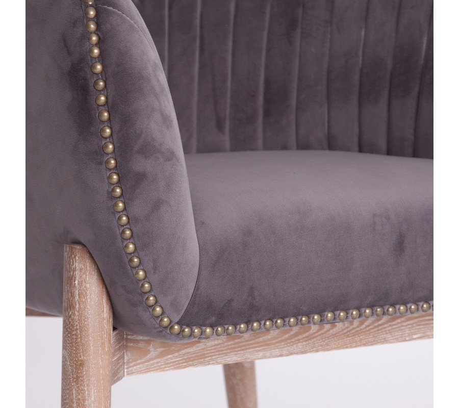 Usaďte sa do pohodlného dizajnového kresla typu Huez , ktoré Vás poteší svojím príjemným vzhľadom s nádychom vintage, no samozrejme perfektne zapadne i do interiérov zariadených v inom štýle. Kombinácia bledého masívneho jaseňového dreva a čalúnenia zo sivého zamatu s nádychom ružovej rozžiari nejedno vyberavé oko. Luxusný nádych kreslu dodávajú zlaté aplikácie po obvode čalúnenia, ktoré sa snúbia s minimalistickým prešívaním.