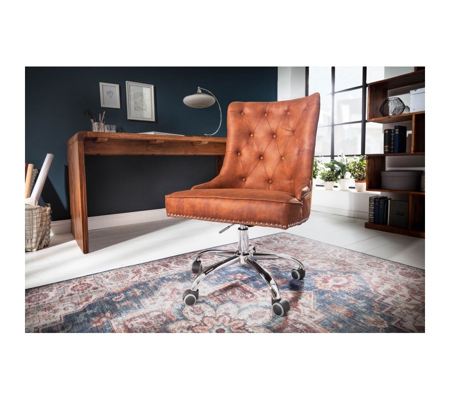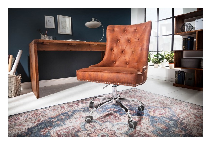 Chesterfield otočné kancelárske kreslo Modern Secretary v hnedej farbe na kolieskach