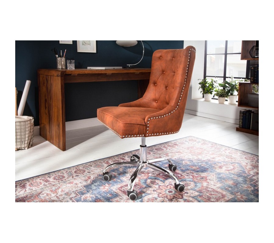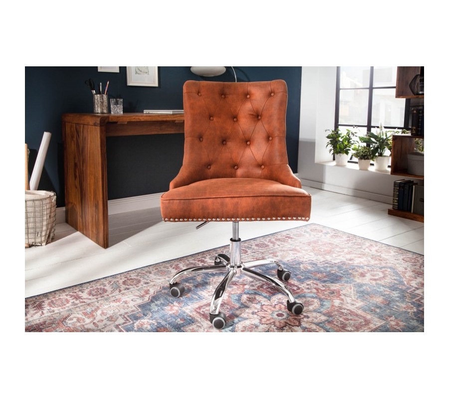 Štýlové otočné kreslo Modern Secretary je zaujímavým kúskom vhodným do každej luxusnej kancelárie či pracovne. Čalúnenie s poťahovou látkou z mikrovlákna pôsobí elegantne a materiál je zároveň praktický na údržbu. Hnedá farba v kombinácii s chesterfield prešívaním a kovovými cvokmi tvorí skutočne luxusný vzhľad a vaša práca sa stane príjemnejšou. Praktickým elementom sú taktiež kolieska, ktoré vám umožňujú jednoduchú manipuláciu, a taktiež mechanizmus na nastavenie výšky sedadla. Kreslo Modern Secretary zapadne do tmavšie i svetlejšie ladených priestorov v kombinácii s masívnym nábytkom a doplnkami vo výrazných farbách.