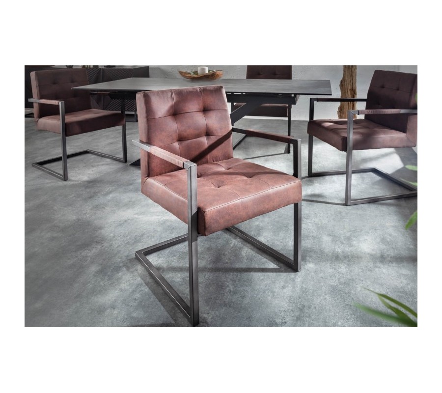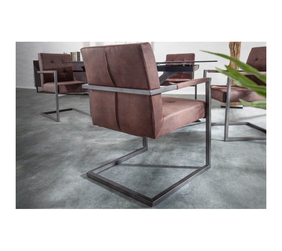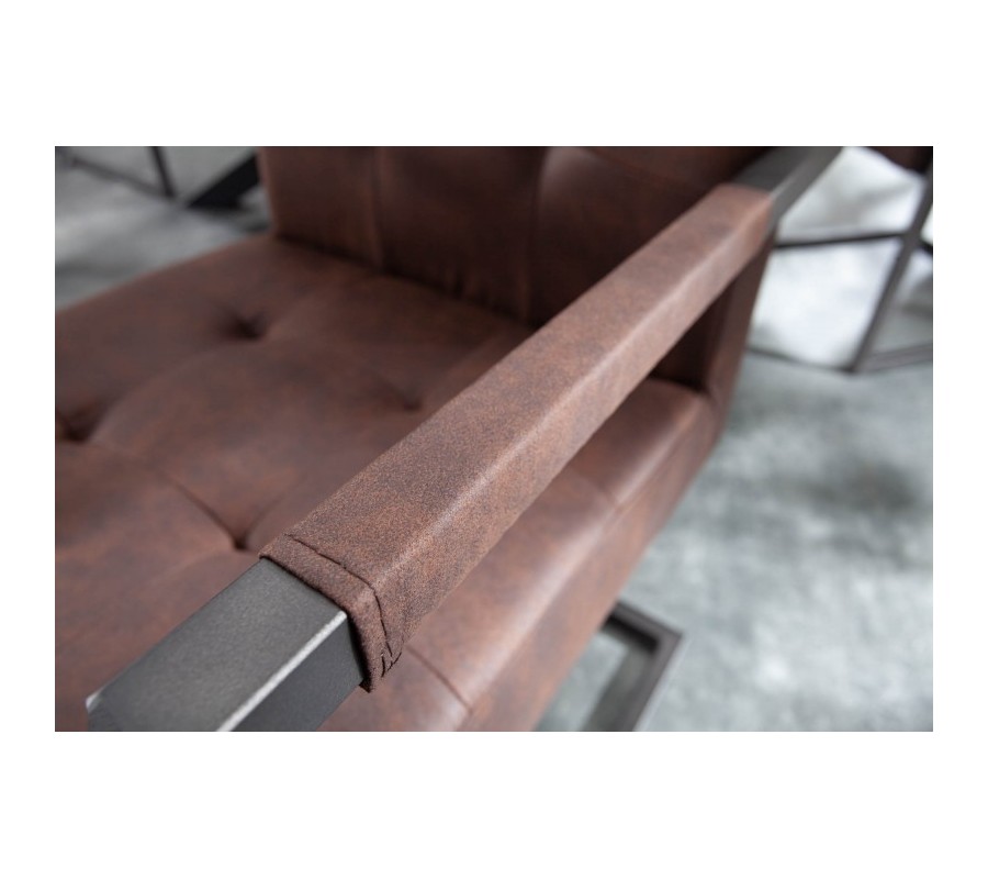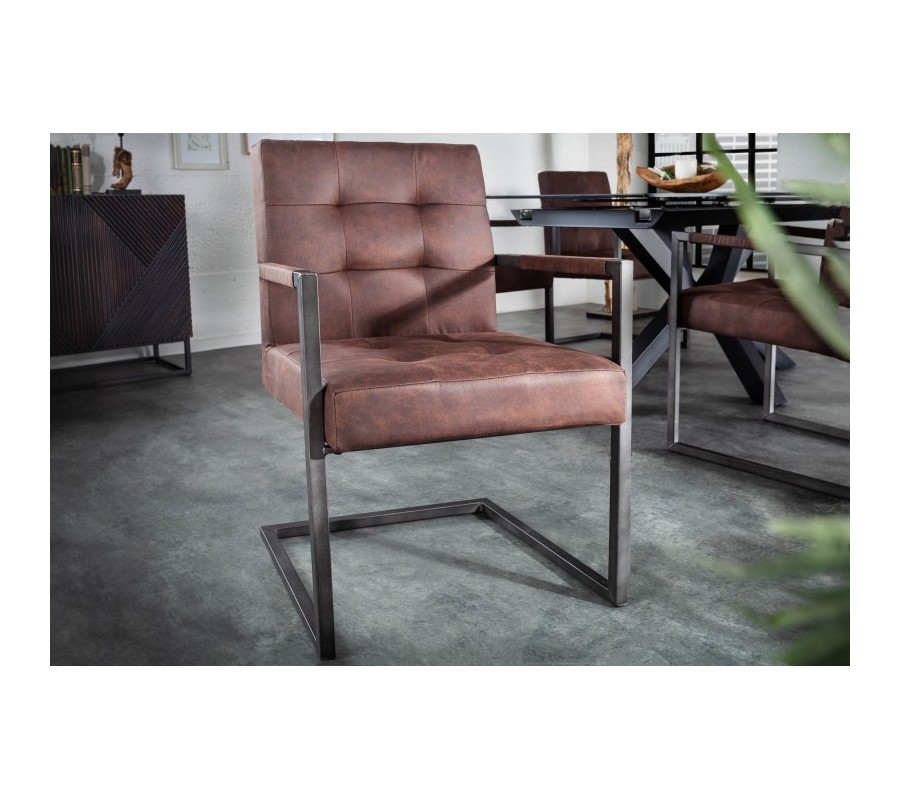 Štýlová stolička Vesoul zaujme predovšetkým svojím jednoduchým industriálnym dizajnom. Rám stoličky je vyrobený z kovu čiernej farby a vytvára príjemnú kombináciu s hnedou poťahovou látkou z mikrovlákna. Chesterfield prešívanie a jednoduché, čisté línie dodávajú stoličke klasický priemyselný nádych. Pohodlie počas sedu vám zabezpečuje pružinové jadro. Stoličky Vesoul možno využiť v jedálni, pracovni či konferenčných miestnostiach a vďaka univerzálnej farebnosti sa dajú skvelo dokombinovať do rôznofarebne ladených priestorov.