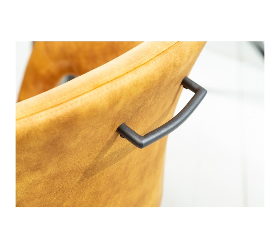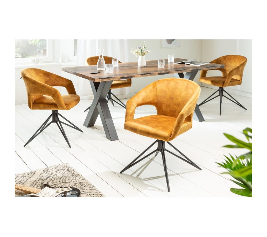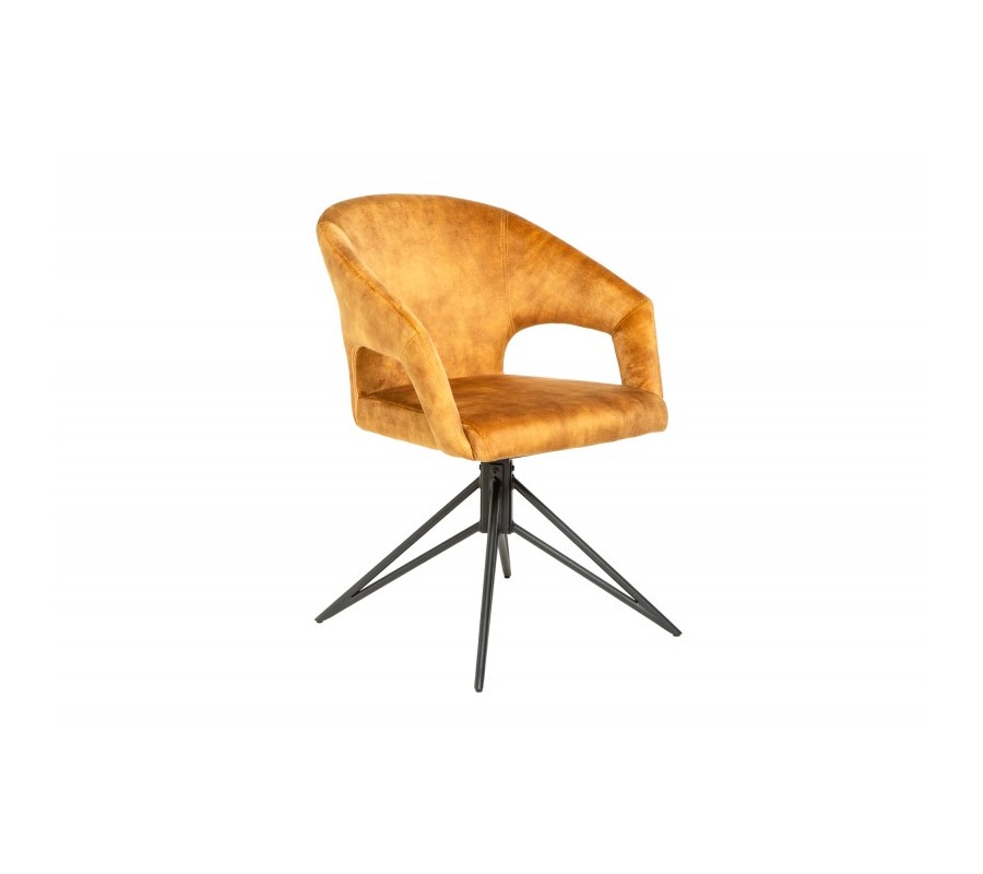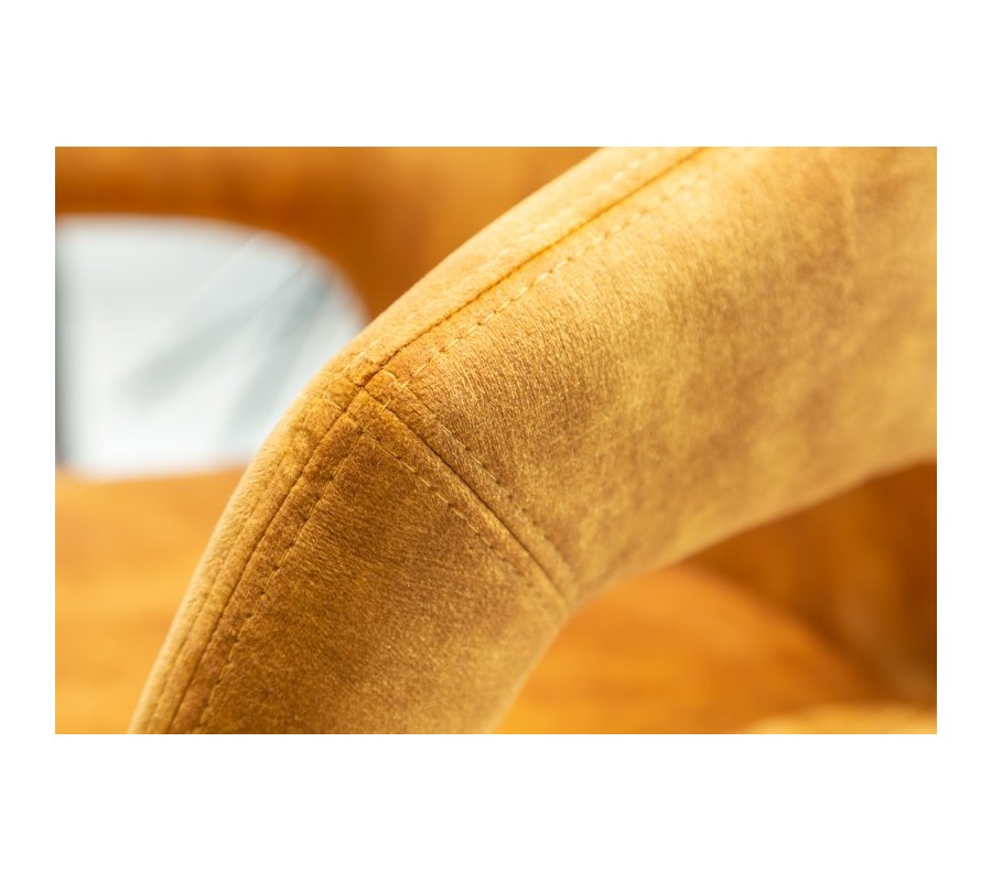 Štýlové kreslo Eternidad je zaujímavým kúskom pre všetkých milovníkov moderného a nadčasového dizajnu. Dizajnové prevedenie zaujme najmä vďaka výraznému zamatovému poťahu v žltej farbe, ktoré kontrastuje s čiernymi kovovými nohami. Sedacia časť, operadlo a podrúčky sú uspôsobené k dokonalému pohodliu a postarajú sa o váš stopercentný komfort pri práci alebo stolovaní. Vďaka možnosti otáčania je kreslo Eternidad skutočne praktickým doplnkom každého interiéru.