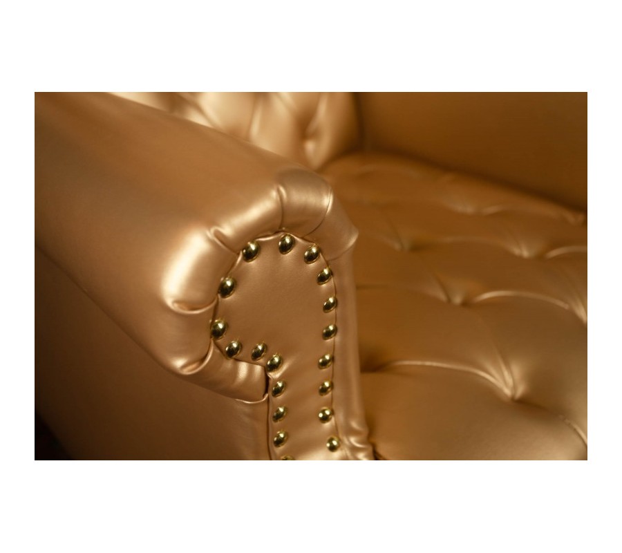 Chesterfield dizajnové kreslo Royal z ekokože zlatej farby 189cm