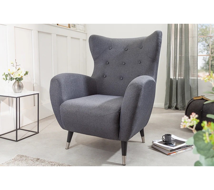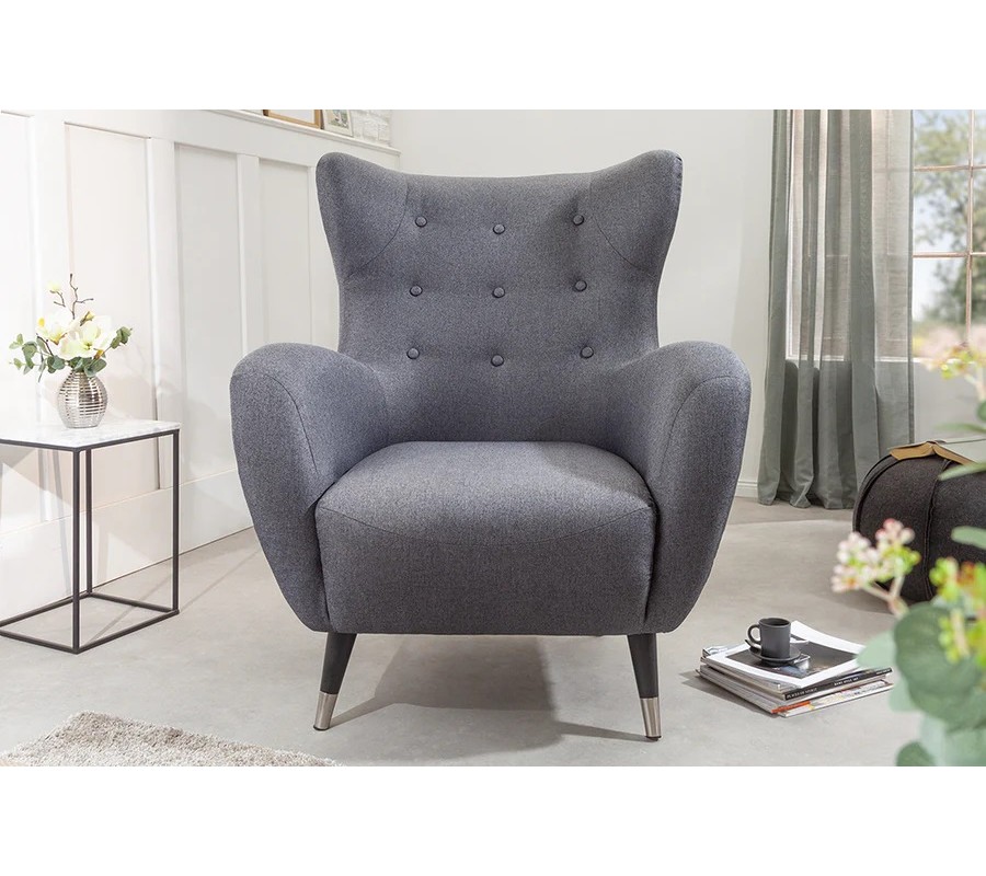 Moderné dizajnové kreslo Bolte so sivým poťahom s chesterfield prešívaním 106 cm