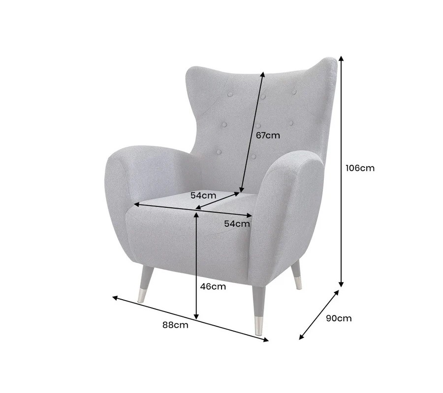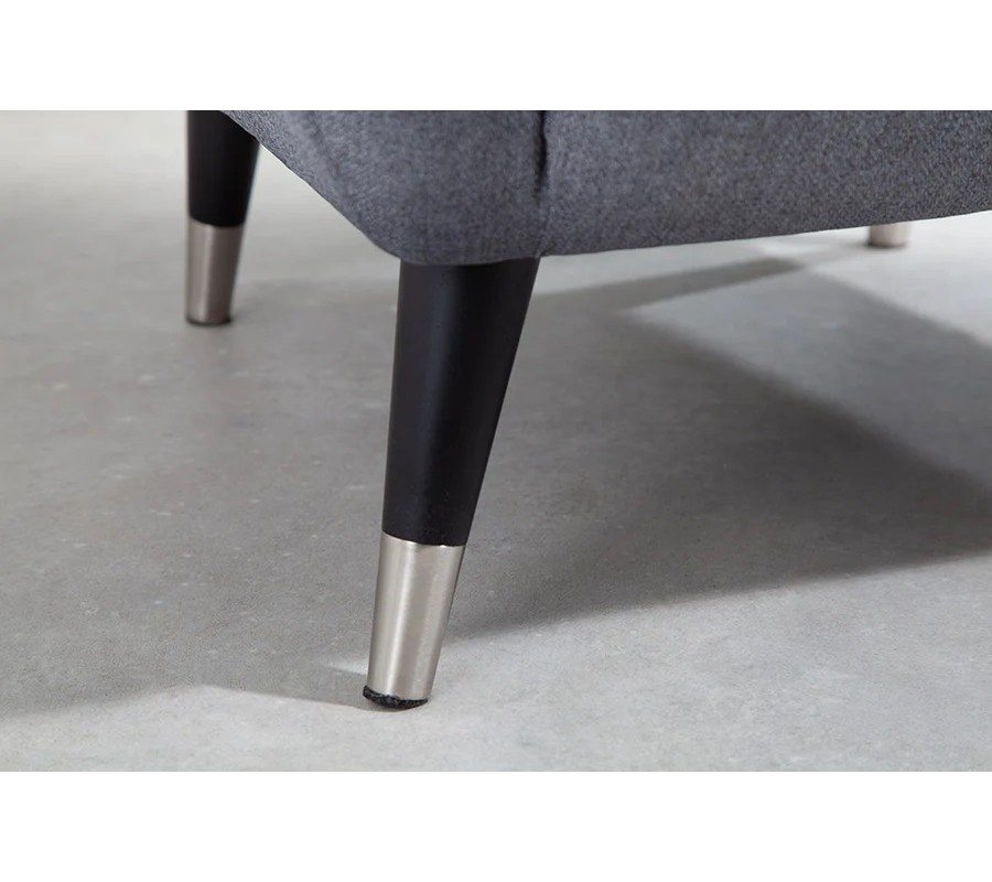 Stabilitu a vizuálnu ľahkosť zabezpečujú drevené nožičky v prírodnom odtieni, ktoré sú mierne vyosené smerom von. Ich spodná časť je ozdobená strieborným kovovým zakončením, ktoré kreslu dodáva moderný akcent a zároveň zvýrazňuje jeho prémiový charakter.