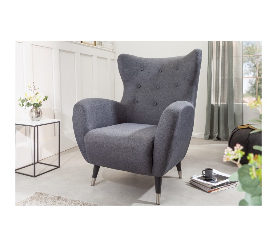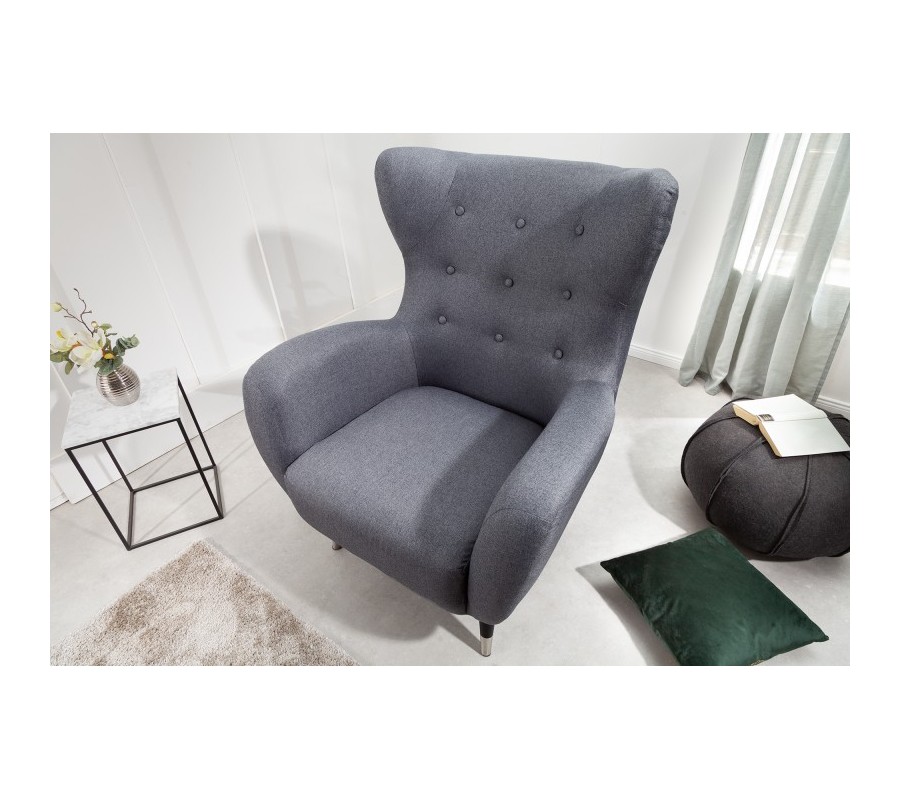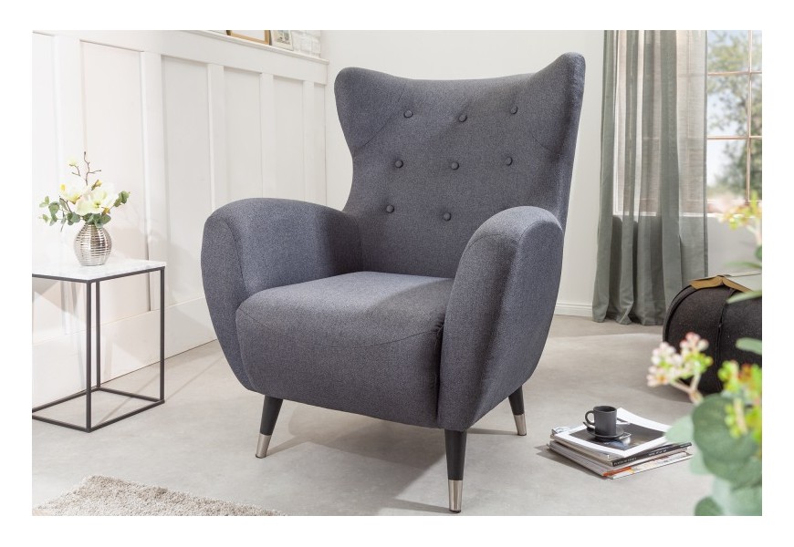 Moderné dizajnové kreslo Bolte so sivým poťahom s chesterfield prešívaním 106cm