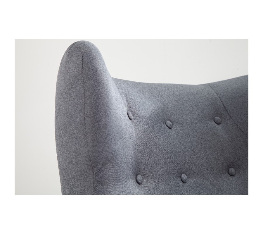 Dizajnové kreslo Bolte je kúskom vhodným do moderne i klasickejšie ladených interiérov. Jeho mohutná konštrukcia disponuje pohodlnou sedacou časťou, operaadlom aj opierkami na ruky. Poťah v univerzálnej sivej farbe je doplnený o nadčasové chesterfield prešívanie. Celkový dizajn dopĺňajú drevené nohy so striebornými kovovými prvkami. Kreslo Bolte nádherne vynikne v kombinácii s bielym alebo čiernym nábytkom z dreva, prípadne skleneným alebo kovovým nábytkom.