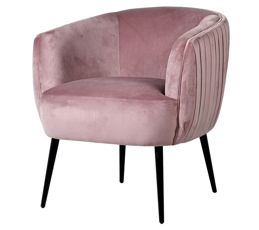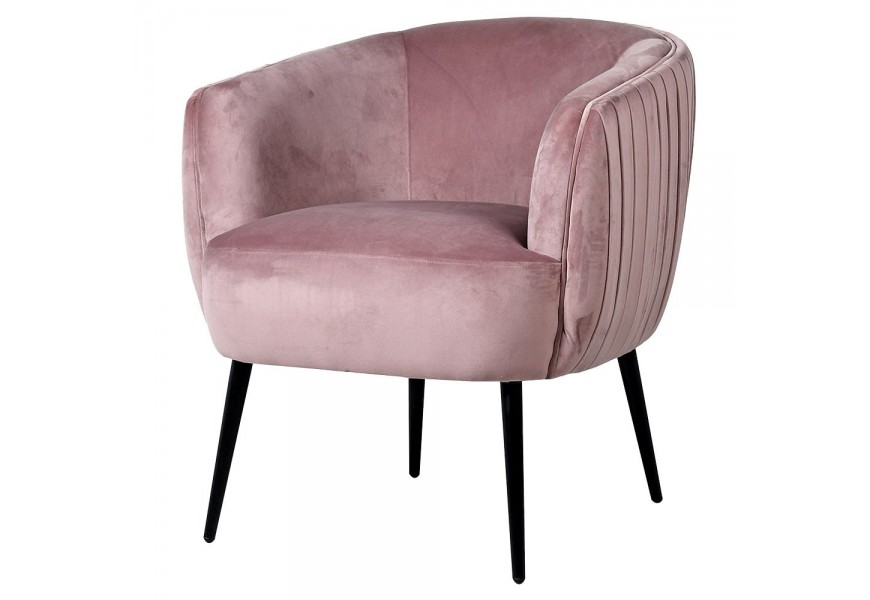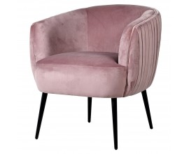 Art-deco kreslo Viane v ružovej farbe so zamatovým poťahom a volánmi 84cm