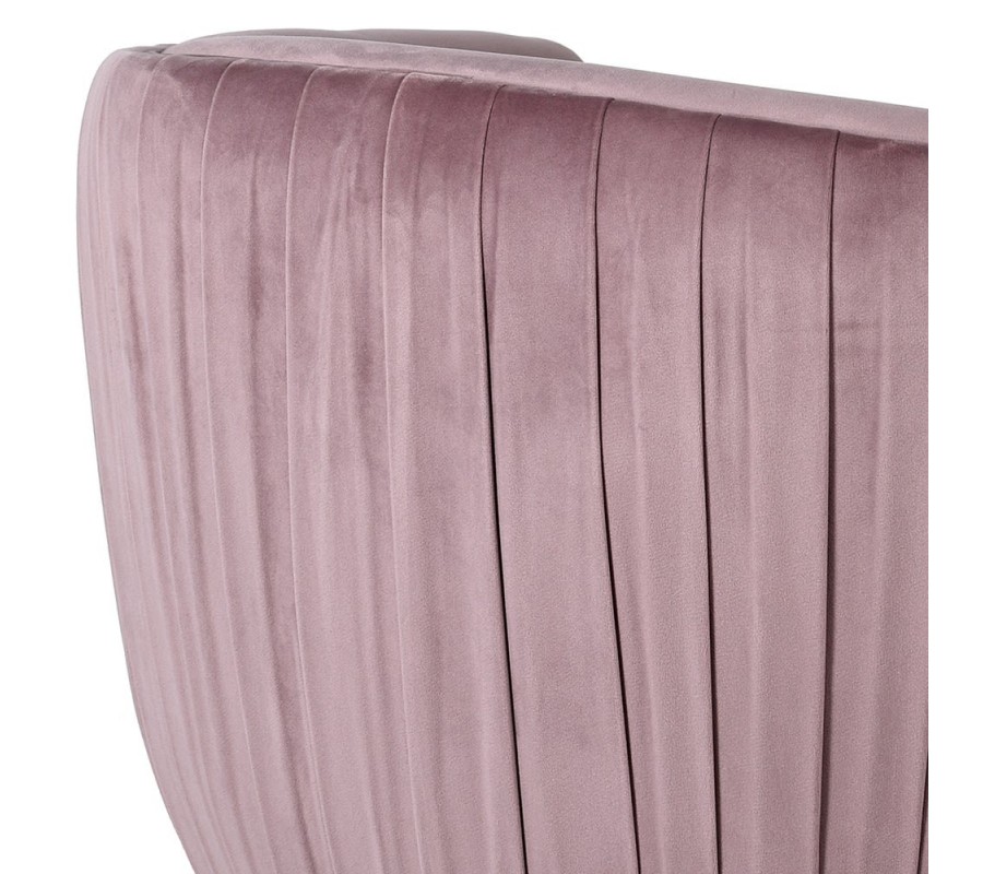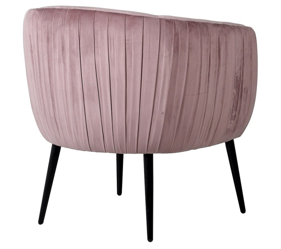 Dizajnové kreslo Viane sa nesie v príjemnej staroružovej farbe, ktorá rozžiari každý moderný interiér. Čalúnenie z príjemného zamatového materiálu zaoblené operadlo s podrúčkami sa postarajú o váš komfort. Vonkajšiu stranu kresla zdobia nazberané volány. Ružový poťah je doplnený štýlovými čiernymi nožičkami. Kreslo Viane zapadne predovšetkým do moderných alebo art-deco ladených interiérov zariadených v svetlejších farbách. Dá sa výborne doladiť doplnkami v čiernej alebo zlatej farbe z kovu a skleneným či zrkadlovým nábytkom.