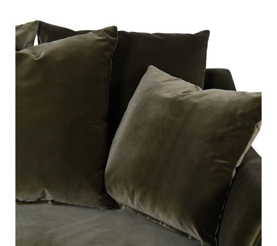 Retro dizajnové zelené kreslo Velvettino so zamatovým poťahom a vankúšmi 140cm