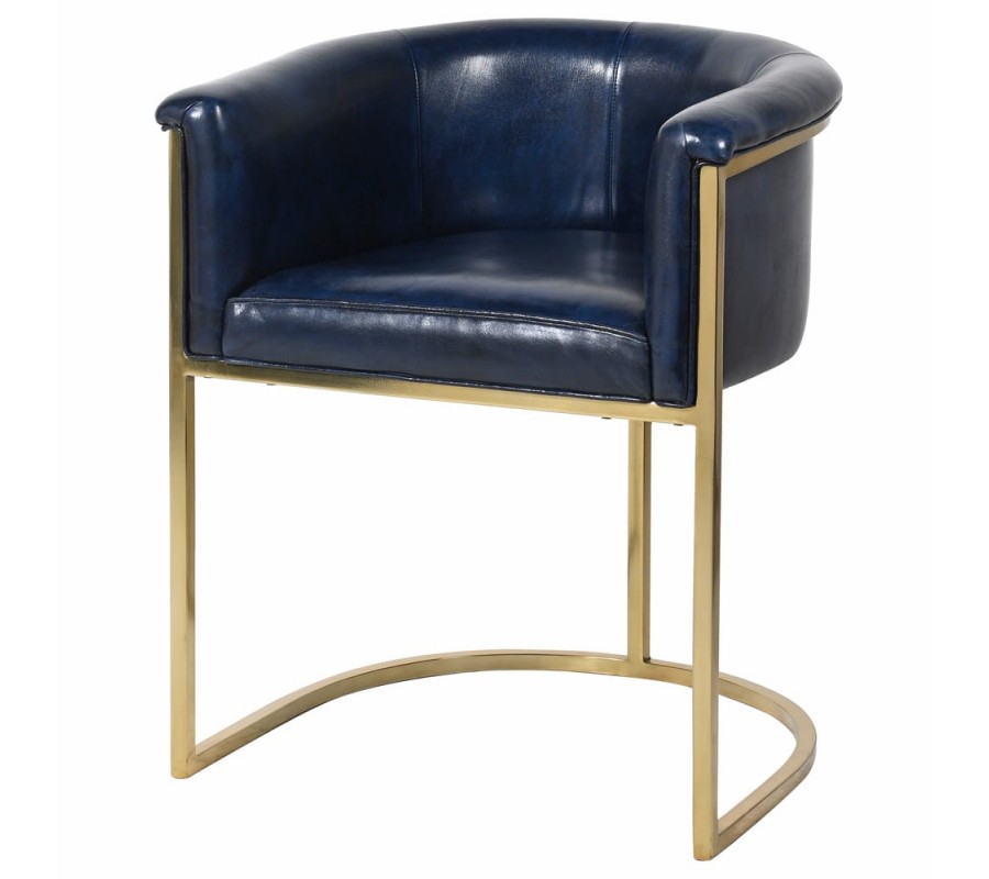 Kožené luxusné kreslo Pellia Azul v tmavomodrej farby so zlatou kovovou konštrukciou 75cm