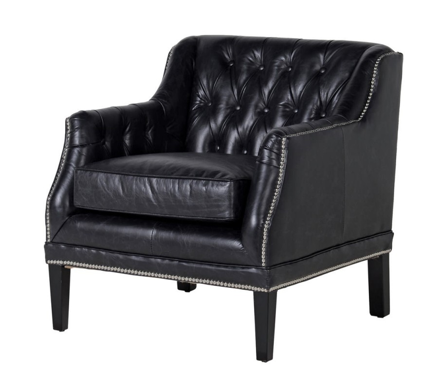 Čierne kreslo z pravej kože v štýle Chesterfield s typickými dekoratívnymi cvočkami dokonale zapadá do elegantne zariadených interiérov. V súčasnej dobe štýl Chesterfield zodpovedá pod eklektické aranžácie, ktoré spájajú moderný minimalizmus s klasickou prepracovanosťou. Čierne kreslo má niekoľko typických vlastností Chesterfiel štýlu, ako napríklad masívna línia s neviditeľnou konštrukciou, nízky sedák, zaoblené tvary, hlboké prešívané gombíky, alebo pekne zakončené lakťové opierky. Jeho luxusný vzhľad je podčiarknutý výraznými nohami s jednoduchým dizajnom z masívneho dreva čiernej farby. Odporúčame ho umiestniť do obývacích miestností, salónov, klubových interiérov v pánskom štýle alebo aj do kancelárií. Kreslo sa hodí do rôznych farebných interiérov, keďže jeho farba je neutrálna. Interiér v ktorom sa kreslo nachádza je možné doplniť napríklad vázami, alebo miskami v čiernej, alebo striebornej farbe. Kreslo Chesterfield kontrastuje so strohou a minimalistickou estetikou a dáva interiéru exkluzívny výraz.