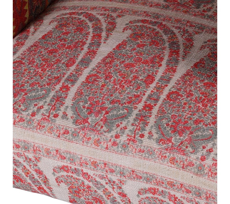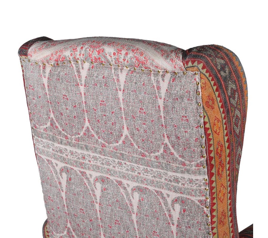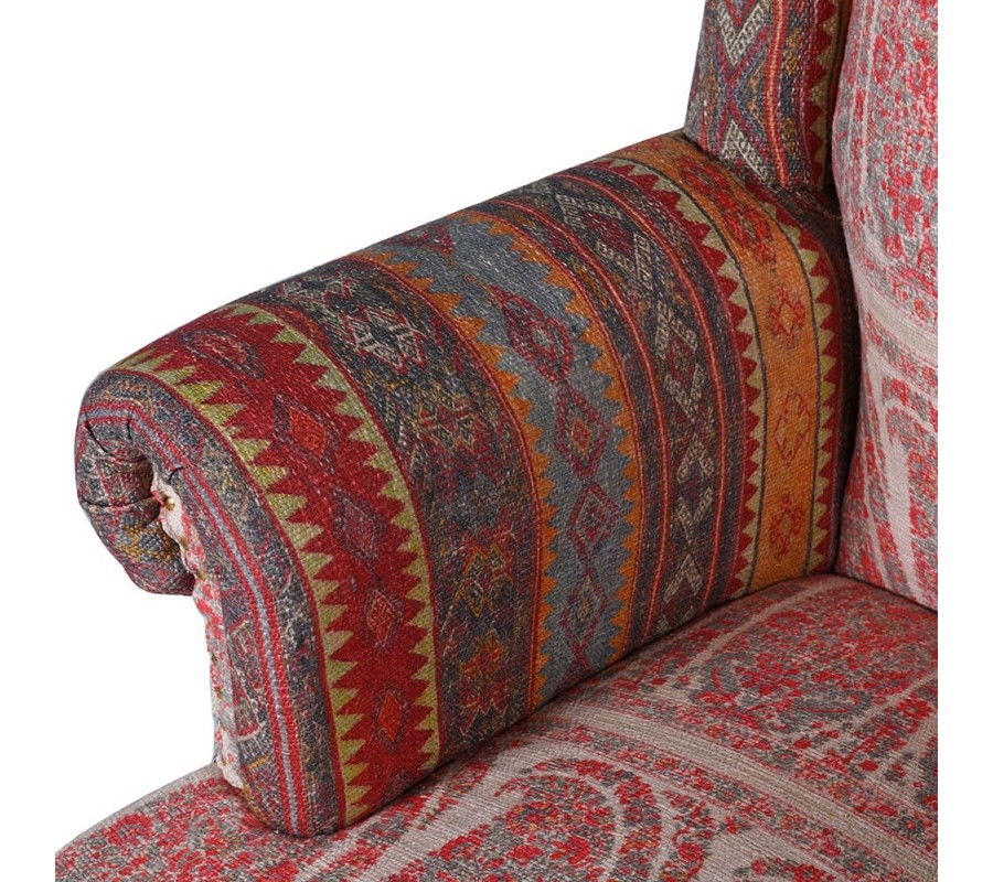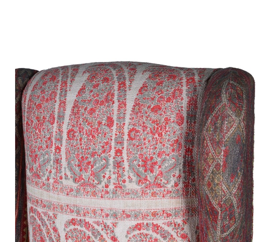 Štýlové kreslo Alia je kúskom, ktorý poteší nejedného milovníka vintage či orientálneho štýlu. Je zaujímavé predovšetkým vďaka svojmu unikátnemu látkovému poťahu v červených tónoch, ktorý zdobia ornamentálne vzory. Hnedé nožičky z masívneho mangového dreva tvoria s čalúnením príjemný a elegantný súlad. Pohodlná sedacia časť, vysoké operadlo a podrúčky sa postarajú o váš stopercentný komfort. Kreslo je tak nielen dizajnovo zaujímavým, ale aj pohodlným kúskom, ktorý si zaručene zamilujete! Kreslo Alia dokonale zapadne do obývačiek zariadených masívnym nábytkom a dá sa vhodne kombinovať aj s výraznejšími farbami.