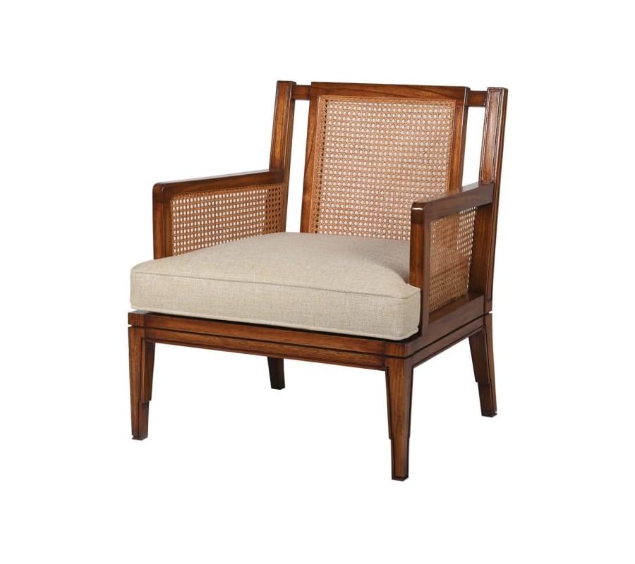 Jedinečné koloniálne kreslo na nožičkách z našej kolekcie Dark Rich už na prvý pohľad jednoznačne zaujme svojím neobyčajným dizajnom. Rám kresla, spolu so štyrmi nožičkami je vyrobený z kvalitného masívneho dreva v príjemnej jantárovo-hnedej farbe. Zadnú opierku, taktiež dve bočné opierky, zdobí výrez s výplňou so sieťovaným vzorom, odľahčujúc tak masívnosť kresla. Pohodlnosť dodáva kreslu priestranná sedacia časť tvorená komfortným vankúšom so svetlobéžovým ľanovým čalúnením. Kreslo je ako stvorené na oddych a relax či už pri šálke čaju alebo kávy alebo pri príjemnej knihe. Kreslo sa bude vynikajúco vynímať v interiéroch ladených do koloniálneho štýlu. Odporúčame ho kombinovať s ďalším nábytkom z našej kolekcie Dark Rich.