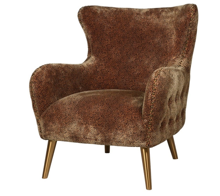 Kreslo Tobarra z dreveného masívu sa nesie v jedinečnom art-deco štýle vďaka svojmu zaujímavému bavlnenému poťahu v podobe leopardieho vzoru, a taktiež aj vďaka svojím zlatým kovovým nožičkám, ktoré dodávajú silný a unikátny art-deco nádych. S art deco kreslami sa taktiež veľmi často spája dizajnový Chesterfield štýl prešívania, ktorý je vidieť na zadnej strane chrbtovej opierky kresla Tobarra, ktoré sa nesie po celej chrbtovej opierke až po obe bočné operadlá. Vďaka svojim väčším rozmerom je kreslo Tobarra veľmi priestranné a pohodlné, a taktiež v kombinácií s art-deco zlatými alebo dizajnovými doplnkami veľmi výrazný kúsok do vašej domácnosti.