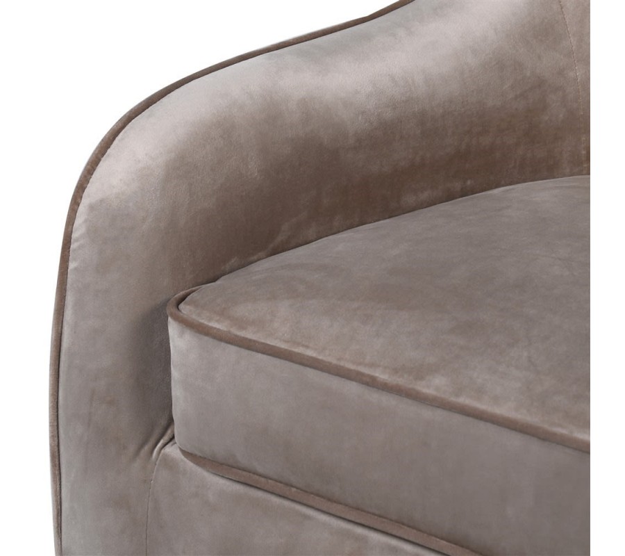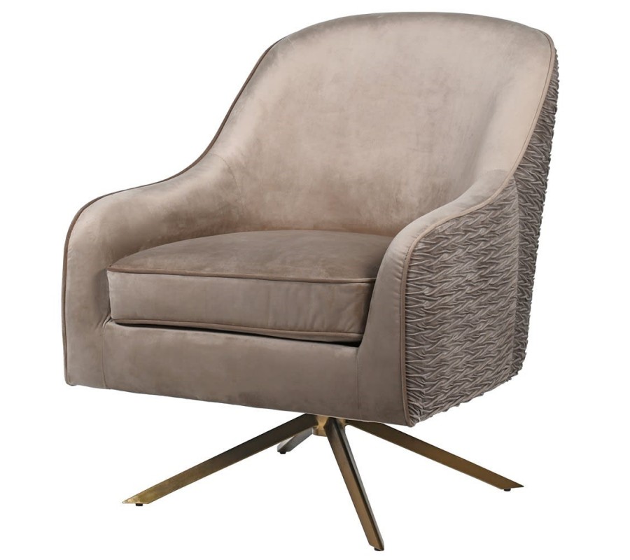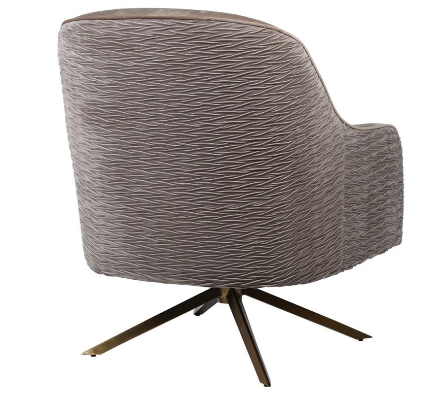 Luxusná art-deco zamatová tmavo béžová otočná stolička Colmar so zlatými nohami 86cm