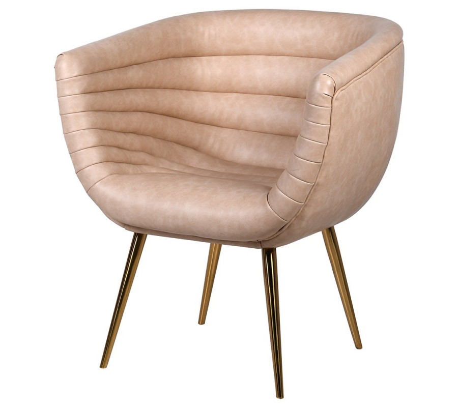 Art-deco oblé kreslo Groovie béžovej farby so zlatými kovovými nohami 80cm
