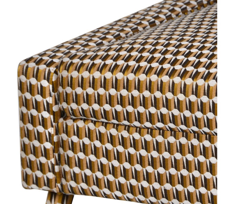 Štýlové kreslo Elion už na prvý pohľad zaujme svojím pestrým geometrickým vzorovaným čalúnením. Prírodné farby rozžiaria každý moderný i klasickejšie ladený interiér a vo vašej obývačke či pracovni navodia príjemnú atmosféru. O vaše pohodlie sa postará komfortné operadlo, praktické podrúčky a mäkká sedacia časť. Kreslo Elion je tak kúskom vhodným pre všetkých, ktorý si chcú dopriať chvíľu relaxu, no je taktiež výborným spoločníkom aj na prácu. Celkový dizajn dopĺňajú zlaté prvky na nožičkách dotvárajúce moderný nádych. Kreslo Elion odporúčame kombinovať s dreveným nábytkom, prípadne rôznymi art-deco či modernými dekoráciami v zlatých odtieňoch.