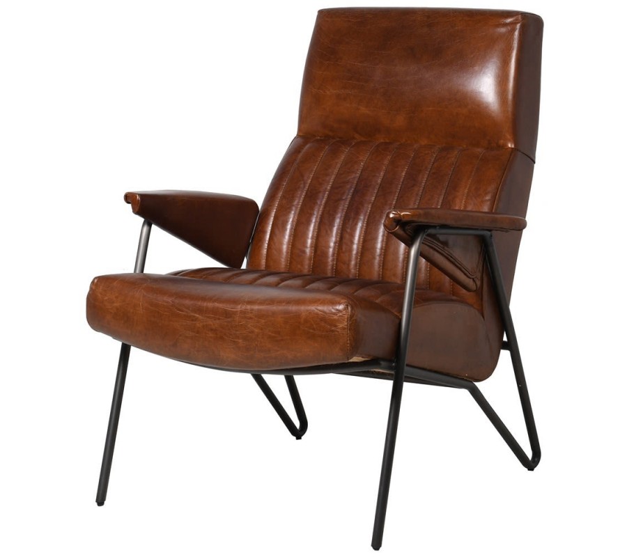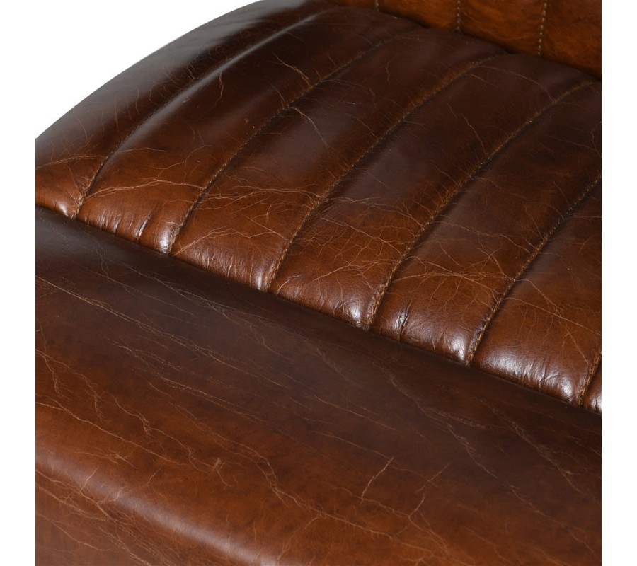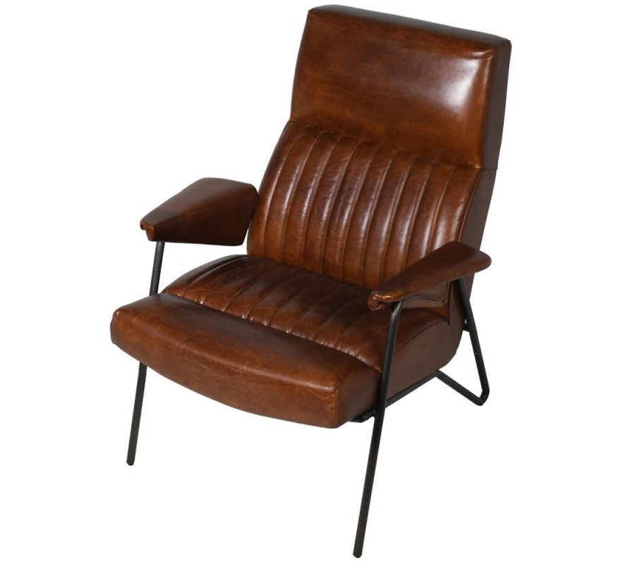 Elegantné hnedé kreslo s jednoduchým dizajnom osloví každého milovníka vintage štýlu. Čalúnené kreslo je vyrobené z pravej kože, čo mu dodáva naozaj štýlový vzhľad. Súčasťou kresla je aj kovová konštrukcia v čiernej farbe a samostatné čalúnené operadlá na ruky, ktoré sú uchytené o kovovú konštrukciu. Jedinečný dizajn kresla vytvára vertikálne prešívanie koženého poťahu na sedacej a opierkovej časti. Pre kožu sú typické vlastnosti ako pevnosť, odolnosť, čo zabezpečí dlhoročnú výdrž každého nábytku z pravej kože. Vďaka svojmu ergonomickému tvaru je kreslo vhodným miestom na odpočinok, alebo čítanie. Kreslo sa hodí do miestností, ktoré sú zariadené vo vintage štýle v kombinácii s nábytkami z tmavého masívneho dreva. Odporúčame ho kombinovať s príručným stolíkom, ktorý sa skladá z čiernej kovovej konštrukcie a z masívnej drevenej dosky. Vďaka svojej farbe sa hodí do svetlých aj tmavých priestorov s teplými hnedými a krémovými odtieňmi.
