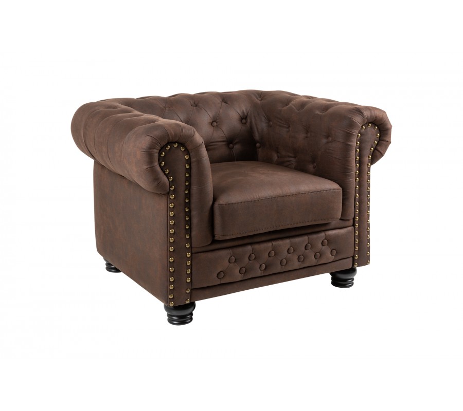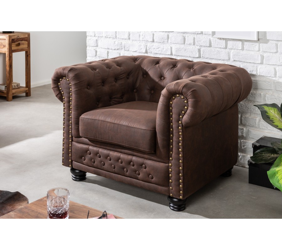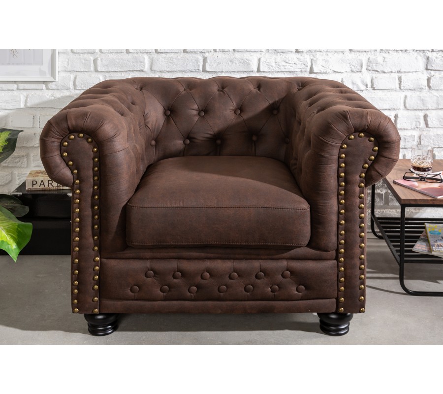 Chesterfield štýlové hnedé kreslo Loungrre s vkusným 105cm