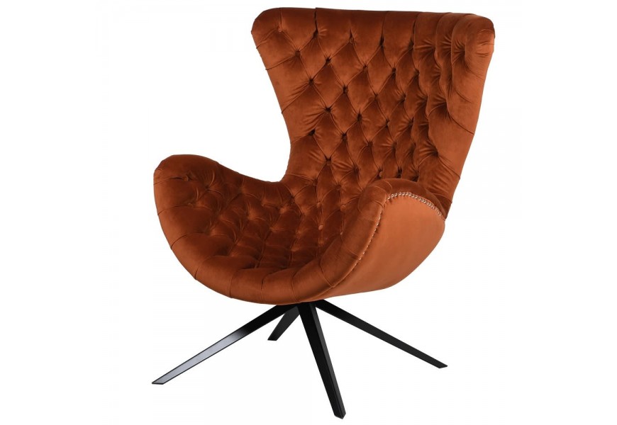 Chesterfield kreslo s tmavooranžovým zamatovým poťahom a čiernymi nohami 108 cm