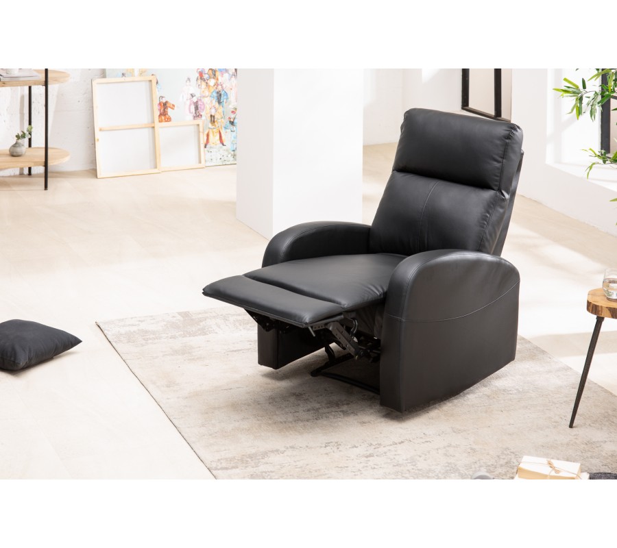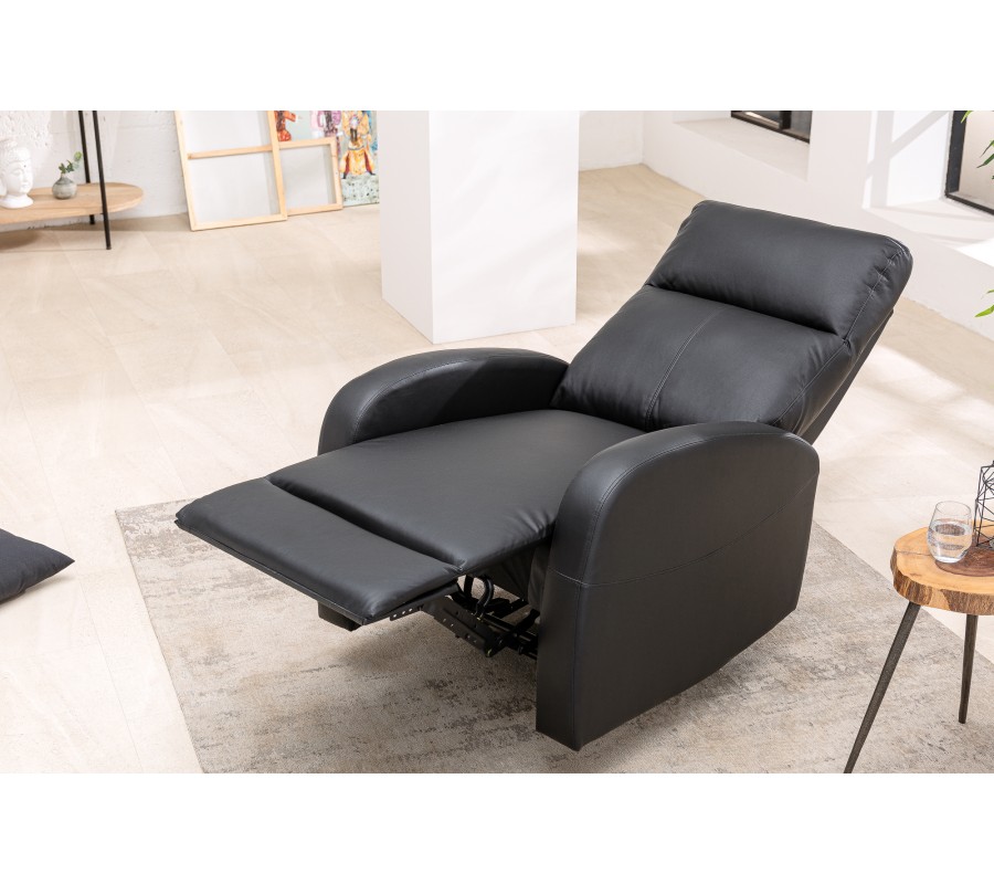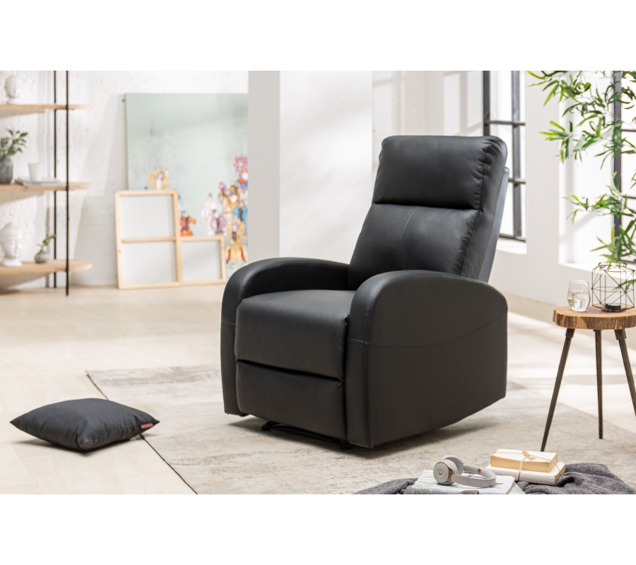 Luxusné a nadčasové rozkladacie kreslo Relajo je vkusným a pohodlným kúskom, ktorý obohatí Vaše chvíle odpočinku či posedenia pri televízii. Kreslo Relajo je čalúnené syntetickou kožou čiernej farby a disponuje pohodlnými opierkami na ruky či zadnou časťou, ktorej výška zabezpečuje pohodlné opretie hlavy, kreslo je rozložiteľné a sklopiteľné do polo sedu s možnosťou podoprenia nôh. Vkusné línie a mohutnosť kresla dokážu dokonale zapadnúť najmä do industriálnych či moderných interiérov v rámci ktorých ho odporúčame kombinovať najmä s neutrálnymi tónmi farieb.