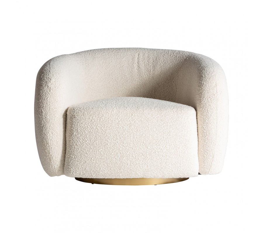 Kreslo Aurélia vo vintage prevedení vytvorí veľmi elegantný pocit vo vašej domácnosti vďaka svojmu jemnému svetlému dizajnu. Na dotyk príjemné bavlnené čalúnenie v krémovej farbe vytvorí svetlý vzhľad kresla, ktoré je doplnené zlatou kovovou podstavou, čo vytvára okrem vintage dizajnu aj nádych art deco štýlu, ktorý dodáva unikátnu kombinovateľnosť do interiérov ladených v rôznych štýloch. Chrbtová opierka je v jednej línií v bočnými opierkami, čo podčiarkuje elegantný vzhľad, a taktiež dodá komfortný sed v kombinácií s bohato polstrovanou sedacou časťou. Vďaka svojím vlastnostiam odporúčame kombinovať kreslo Aurélia v jedinečných interiéroch s nádychom vintage štýlu, a taktiež aj s bielym a svetlým nábytkom so zlatými kovovými doplnkami. Kreslo Aurélia sa taktiež nestratí ani vo vašich podnikoch zariadených vo vintage štýle, kde kreslo vďaka svojmu pohodlnému sedeniu nedovolí zákazníkom odísť z vašej prevádzky.