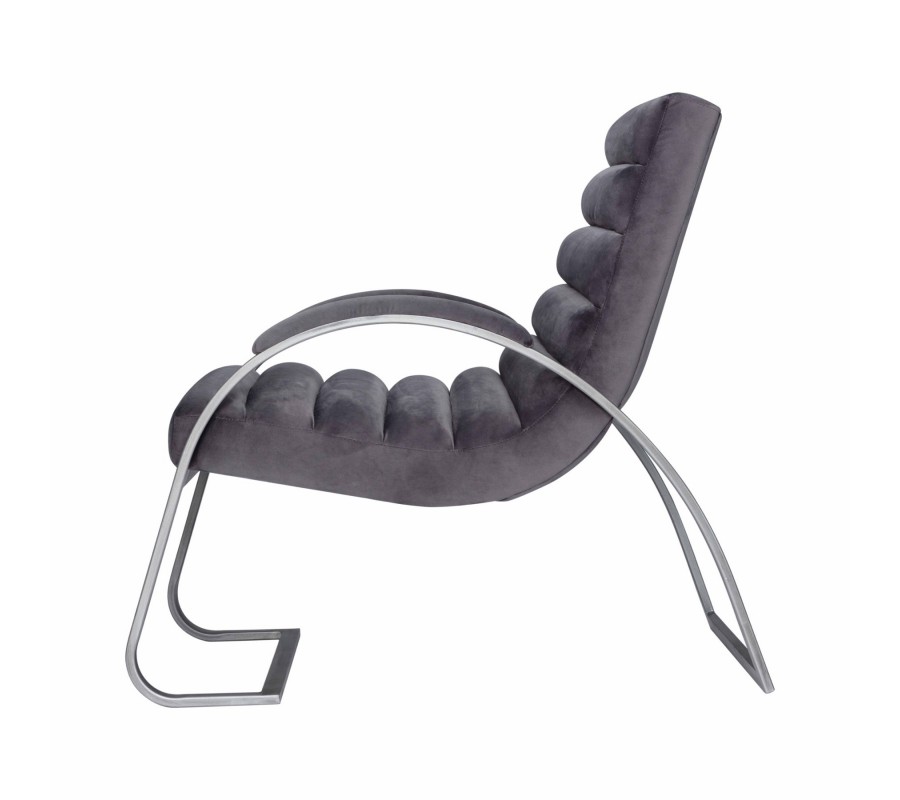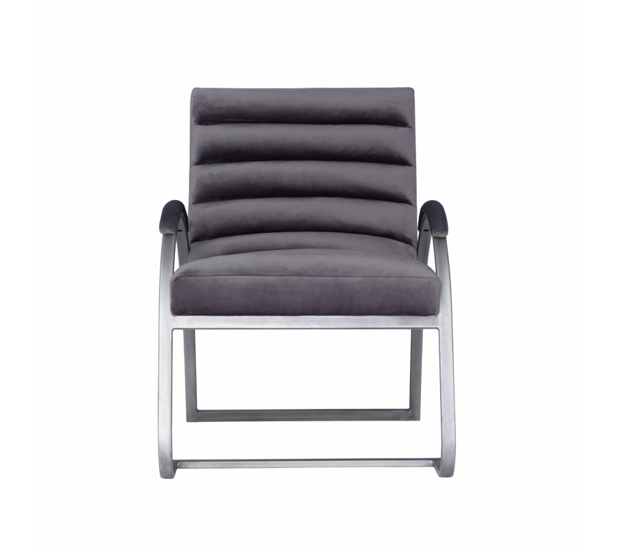 Dizajnové kreslo Jetta je veľmi pohodlné a kvalitné kreslo do vašej obývačky vďaka bohatému sivému zamatovému čalúneniu a ergonomickému tvaru ktorý zaručí komfortné sedenie. Bohato polstrovaná sedacia časť a chrbtová opierka sa môže pýšiť dizajnovým prešívaním v podobe horizontálnych línií. Kreslo je vložené do striebornej kovovej podstavy v oblúkovom tvare, čo zároveň vytvára bočné opierky, ktoré sú obohatené o čalúnenie na vrchu pre väčší komfort pri sede s opretými rukami. Vďaka svojmu neutrálnemu farebnému prevedeniu sa kreslo Jetta veľmi ľahko kombinuje do moderných interiérov či už vo svetlom alebo tmavom prevedení a kovová podstava ponúka možnosť kombinovania kresla s kovovými doplnkami a dekoráciami. Kreslo Jetta sa taktiež hodí aj do štýlových reprezentatívnych priestorov či recepcií firiem a kancelárií pre usadenie návštev. Vhodné je ho kombinovať s konferenčným stolíkom so striebornými nožičkami.