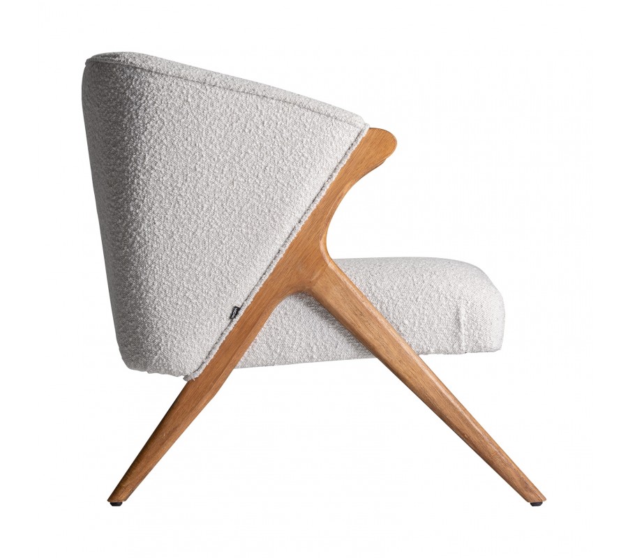 Luxusné vintage krémové kreslo Aurélia s poťahom z bavlneného buklé a nohami z borovicového masívu 80cm