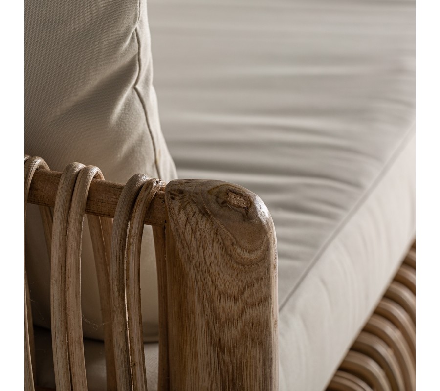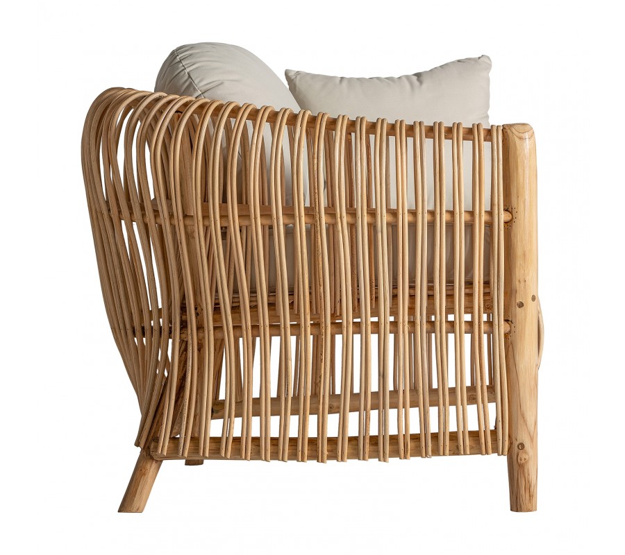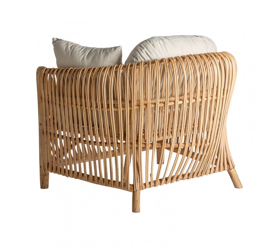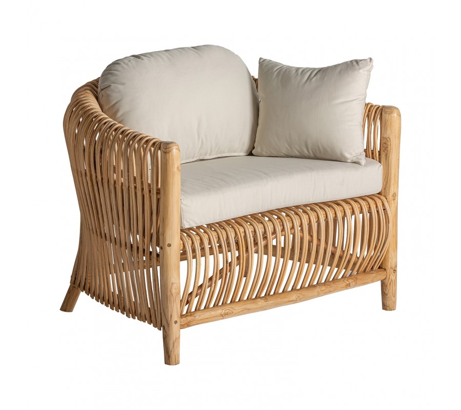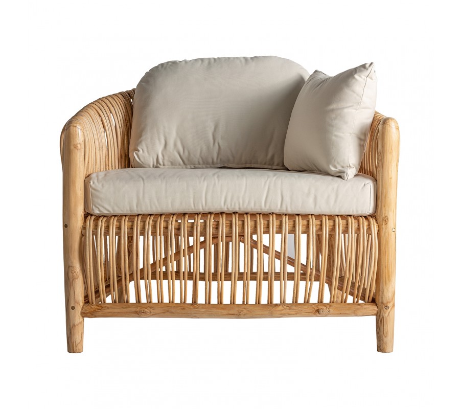 Ratanové dizajnové kreslo Brodas v prírodnom štýle z ratanu s bavlneným poťahom 70cm