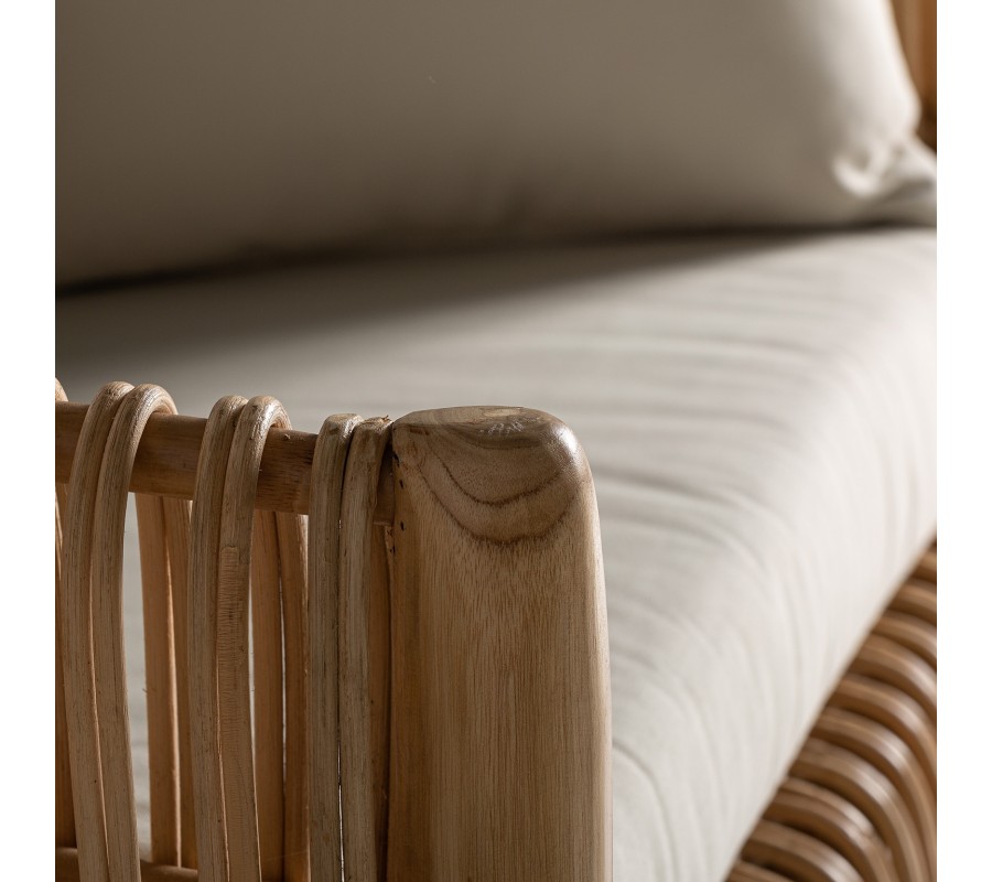 Dizajnové kreslo Brodas zaujme svojím elegantným zaobleným tvarom, ktorý vám zaručí stopercentný komfort pri chvíľach oddychu. Konštrukcia vyrobená z ratanu sa nesie v prírodnej hnedej farbe a dopĺňa ju svetlý béžový bavlnený poťah na vankúšoch na sedacej časti i operadle. Kreslo je tak skutočne komfortným kúskom, ktorý si svoje miesto nájde predovšetkým vo vidiecky ladených obývačkách či pracovniach. Skvelo vynikne napríklad aj v tématických kaviarňach či reštauráciách v kombinácii s masívnym stolíkom a doplnkami v naturálnych zemitých odtieňoch. Kreslo Brodas vynikne najmä v svetlejšie ladených priestoroch.