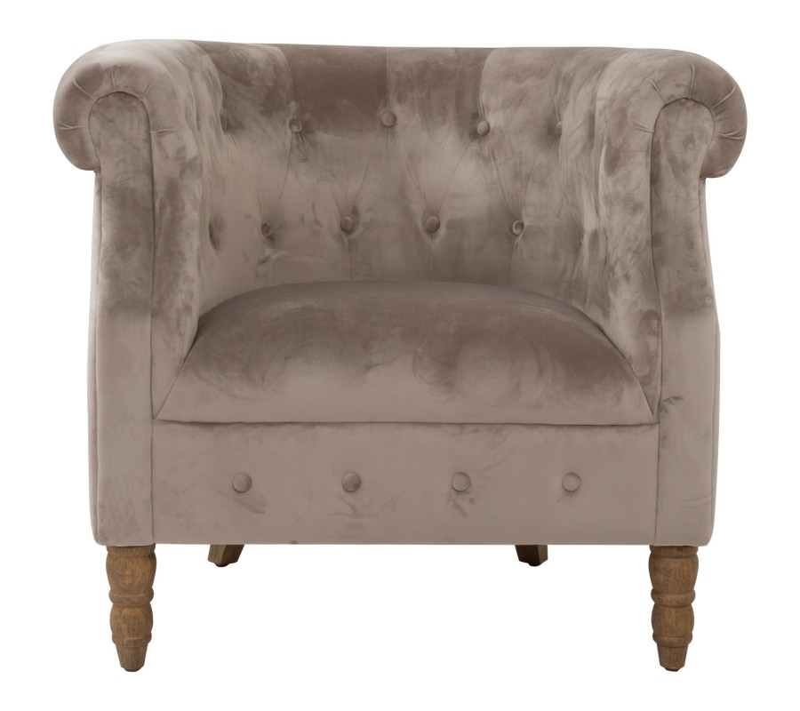 Unikátne a nadčasové kreslo Chelsea sa vyznačuje najmä prepychovým zamatom a noblesným, neutrálnym koloritom. Tento kúsok je vhodný pre každého milovníka nadčasových trendov. Kvalitný materiál a elegantné detailné spracovanie robia z tohto kresla jedinečný kúsok, ktorý vynikne v moderných obývačkách, ale aj priestoroch luxusných kaviarní, lobby barov či recepcií noblesných hotelov. Charakteristickým znakom je tvarované rolované operadlo do tvaru písmena U a štýlové chesterfield prešívanie. Aj tieto dizajnové detaily dopomôžu oživiť vaše priestory a vytvoria sofistkovaný vzhľad. Toto kreslo má mierne zvýšene nožičky, ktoré sú vyzdobené vyrezávaním a spolu s prirodzenou farbou dreva dávajú kreslu vintage nádych. Okrem estetického pôžitku kreslo Chelsea vďaka príjemnému mäkkému polstrovaniu zaručuje aj dokonalý komfort. Pre vytvorenie dokonalej nadčasovej elegancie odporúčame kreslo kombinovať aj s ďalšími kúskami z kolekcie Chelsea.