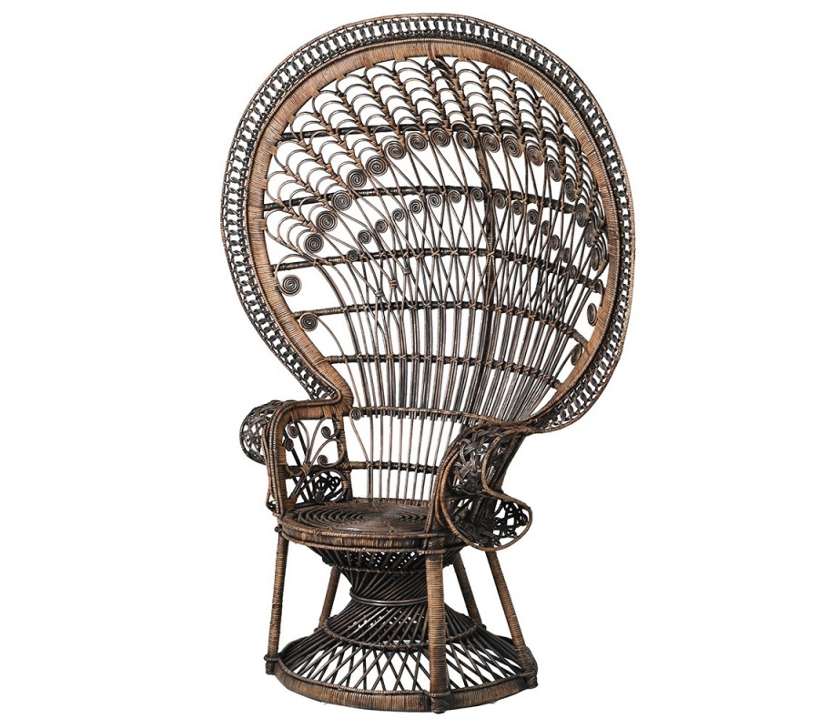 Jedinečné kreslo Eladora v luxusnom čierno hnedom ratanovom vyhotovení vás vráti späť v čase, vďaka svojej silnej podobizni s kreslom z rodiny Adamsovcov. Avšak kreslo Eladora je obohatené o moderný dotyk, ktorý o krok viac zlepšil dizajnovú stránku kresla. Luxusné kreslo Elador, najmä jej rozmerná chrbtová opierka, disponuje sofistikovaným prepletom v tvare operenia páva, čo výrazne oživí dizajnovú stránku tohto produktu. Kreslo Eladora je postavené na tvarovej podstave, podobnej tvaru presýpacích hodín. Okrem chrbtovej opierky v neposlednom rade kreslo disponuje aj bočnými opierkami, ktoré dodávajú na komfortnej stránke tohto produktu. Netradičný, no zároveň originálny dizajn tohto kresla odporúčame kombinovať v orientálne alebo klasicky zariadených obývačkách s tmavými farbami a prírodnými materiálmi.