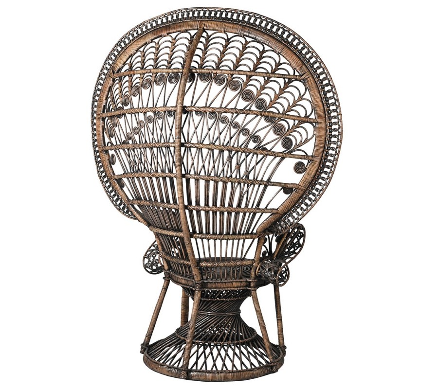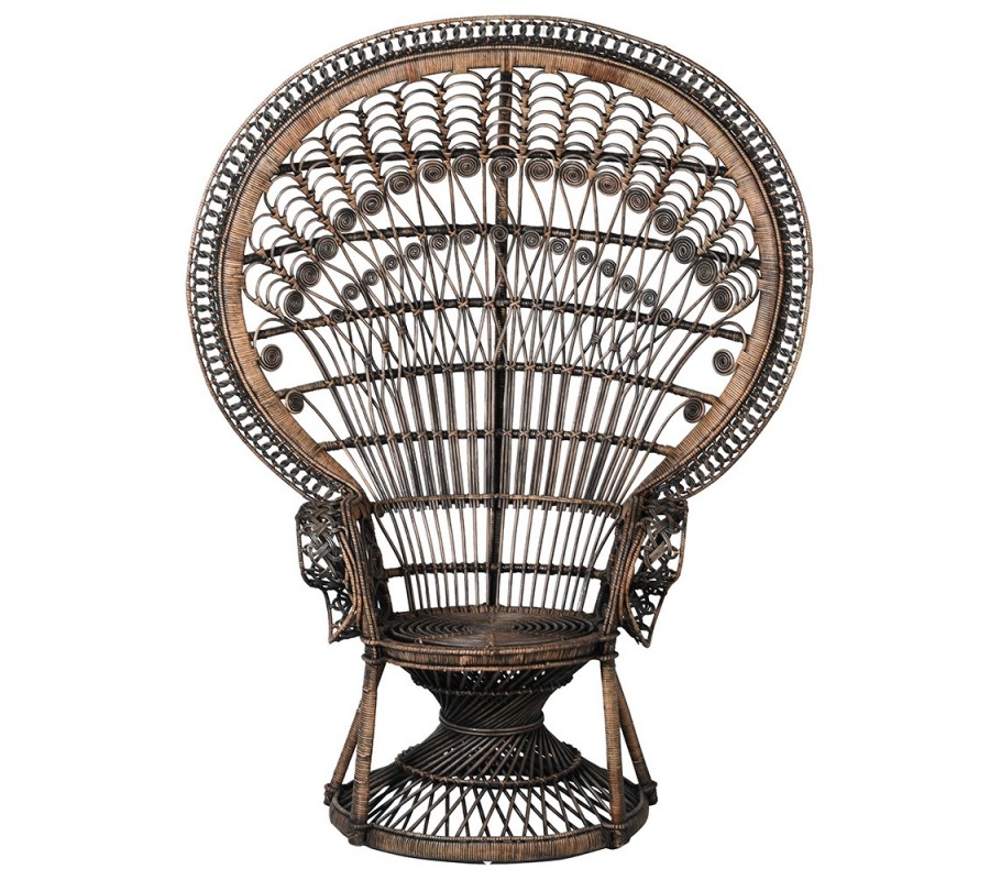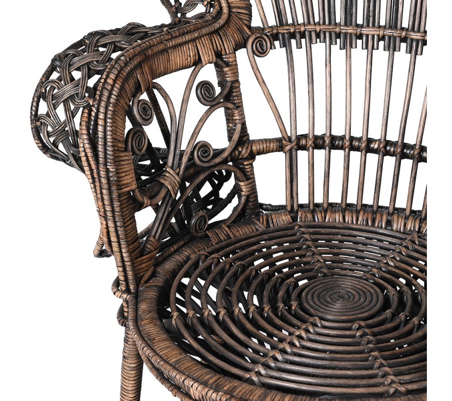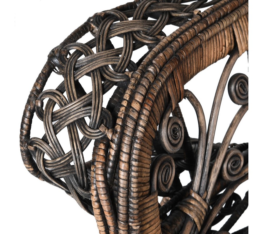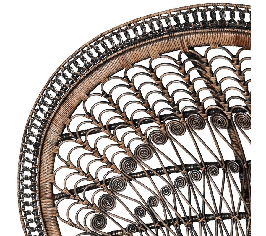 Luxusné ratanové kreslo Eladora v čierno hnedom prevedení s pávím dizajnom na okrúhlej opierke 172cm