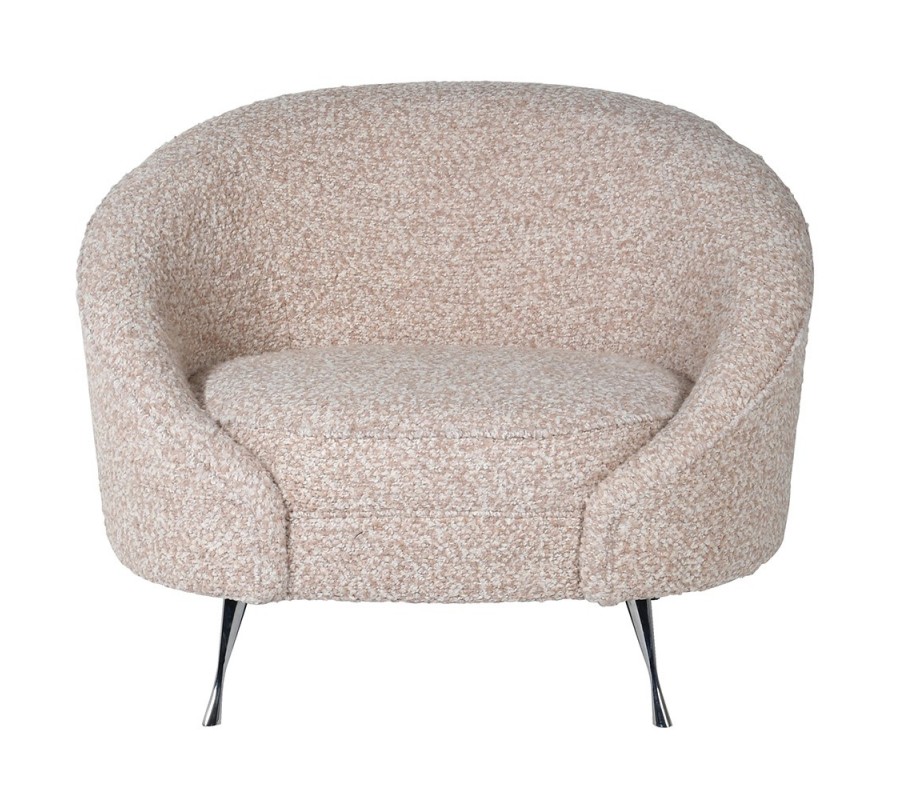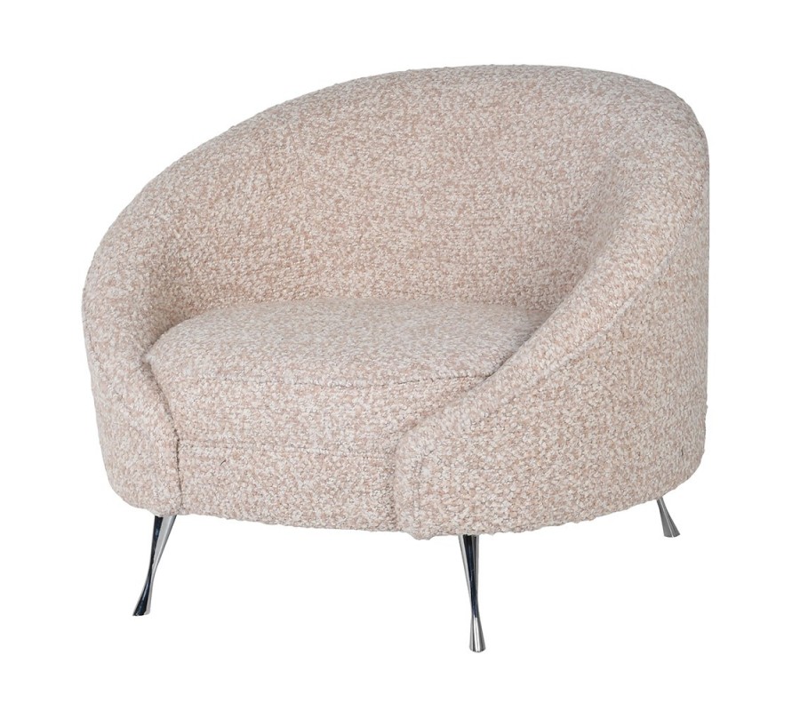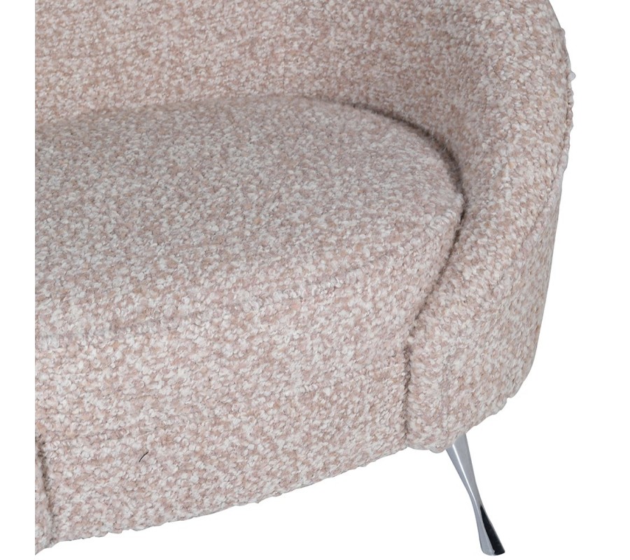 Luxusné buklé kreslo Blush v zaoblenom tvare so starorúžovým čalúnením a dizajnovými striebornými kovovými nožičkami 98cm