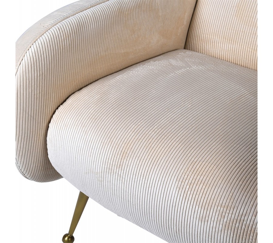 Majestátnosť konštrukcie kresla Butter vkusne dopĺňa krémové farebné prevedenie čalúnenia v štýle menčester. Je vhodným spoločníkom na relax a skvelo sa bude hodiť do vašej art deco moderne zariadenej obývačky, vstupnej haly či pracovne. Dominantou kresla sú mohutne pôsobiace opierky na ruky pripomínajúce krídla labute. Na prvý pohľad rozhodne zaujmú zlaté kovové lesklé nožičky s oblým zakončením. Svojou farebnosťou a prevedením presvetlí aj tmavšie priestory a zároveň pôsobí veľmi honosne v priestrannejších interiéroch. Vystihne podstatu monochromatického zariadenia v kombinácii s jemnými béžovými odtieňmi na kobercoch, sedačke či komode na zlatých nožičkách. Rovnako vám dovoľuje aj povoliť uzdy fantázii a doladiť ho k sýtym farbám ako napríkad k burgundy, tmavej hnedej, smaragdovej či žltej v rámci doplnkov v podobe vankúšov, závesov a váz.