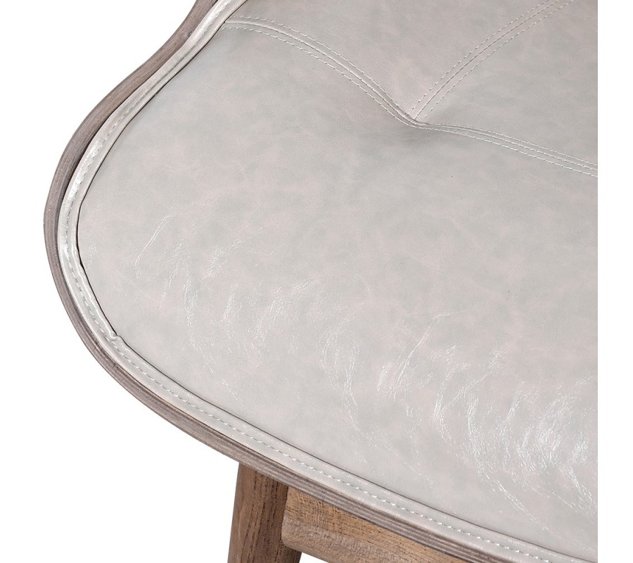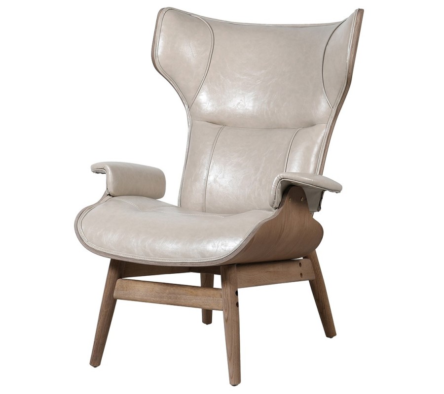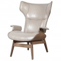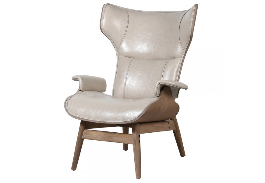 Unikátne spojenie kvalitných materiálov a nadčasového dizajnu s nádychom moderných interiérov snúbených s nestarnúcim retro vizuálom- to prináša dizajnové kožené čalúnené kreslo Bentley. Na prvý pohľad zaujme jeho nevšedný odtieň čalúnenia z eko kože v hnedosivej farbe. Mohutná konštrukcia z brestového masívu pokrýva zadnú stranu operadla a vyúsťuje v podobe štyroch šikmých nožičiek, a tak zabezpečuje stabilitu a pevnosť kresla. Sedacia časť kresla vo výške 50cm sa nesie v zaujímavých oblých líniách zaisťujúcich komfort pri sedení spolu s nadväzujúcimi opierkami na ruky, ktoré sú rovnako očalúnené. Jednotlivé časti čalúnenia na operadle sú delené dizajnovými prešivmi na niekoľko segmentov, čo robí z kresla unikátny doplnok vašej obývačky, domácej knižnice, vstupnej haly či kancelárie. Kreslo Bentley vytovrí dokonalú harmóniu v kombinácii s nábytkom v teplej svetlej hnedej farbe a jednoduchými modernými doplnkami v podobe vysokej stojacej lampy či príručného retro stolíka.