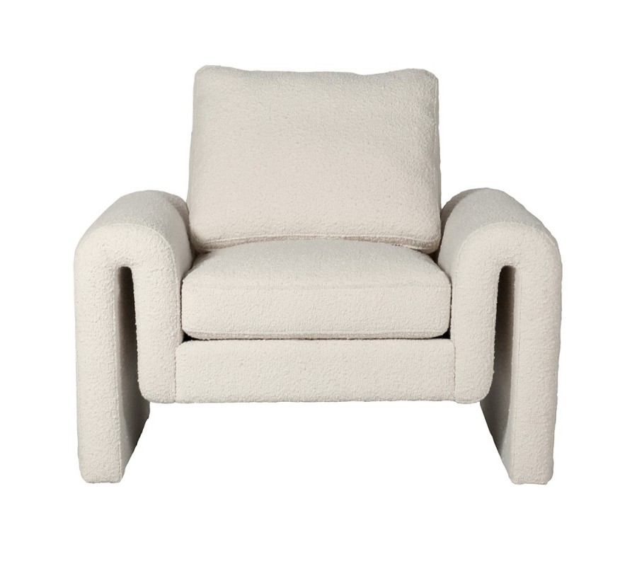 Jedinečné tvarované kreslo Mey je mimoriadnym dizajnovým kúskom s nádychom retro štýlu, ktorý vám zaručene spríjemní sedenie vo vašej obývačke. Čalúnenie kresla Mey je v dizajnovom bielom buklé prevedení, ktoré sa môže pýšiť krásnym vzhľadom a veľmi pohodlným dotykom. Dizajnovej stránke dominujú nízka chrbtová opierka a bočné opierky, ktoré svojou výškou vytvárajú zároveň aj podstavu, podobnú písmenu M. Komfortný sed vám zaručí nielen príjemný materiál, ale taktiež aj bohato polstrovaný podsedák a chrbtová poduška. Luxusné biele kreslo Mey odporúčame kombinovať do moderných alebo art-deco štýlových interiérov v kombinácií so živou zeleňou, s bielymi stolíkmi s lesklými kovovými prvkami, a so svetlo sfarbenými buklé čalúnenými sedačkami a taburetkami.