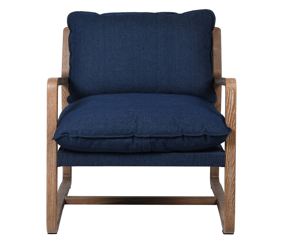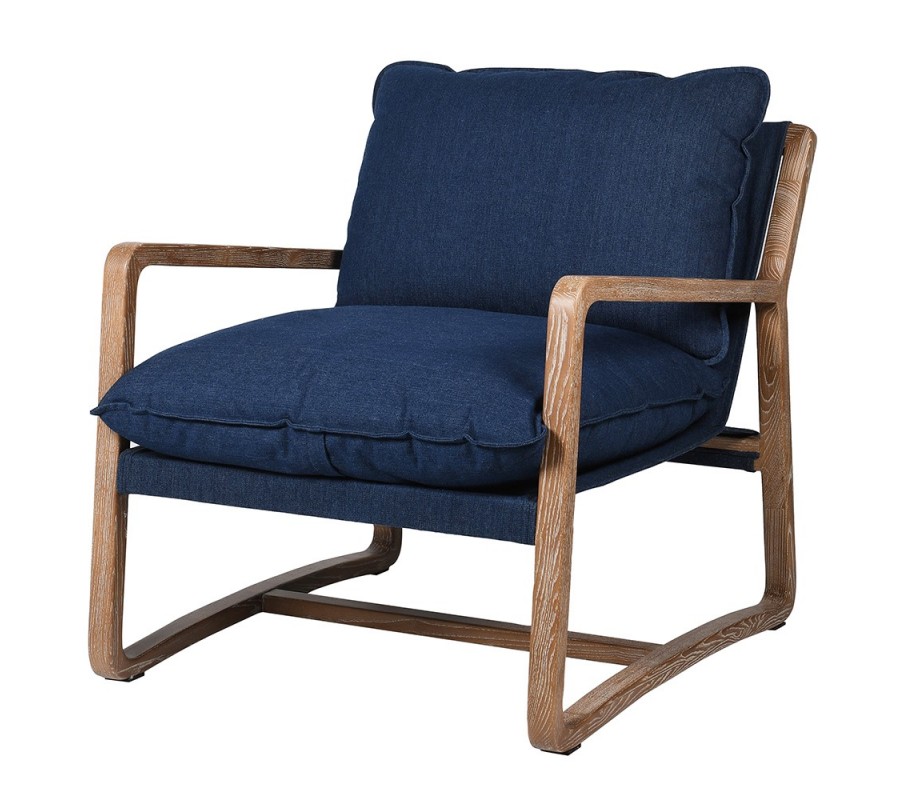 Vidiecke masívne tmavomodré kreslo Judith II s opierkami na ruky a s nohami z jaseňového dreva 74cm