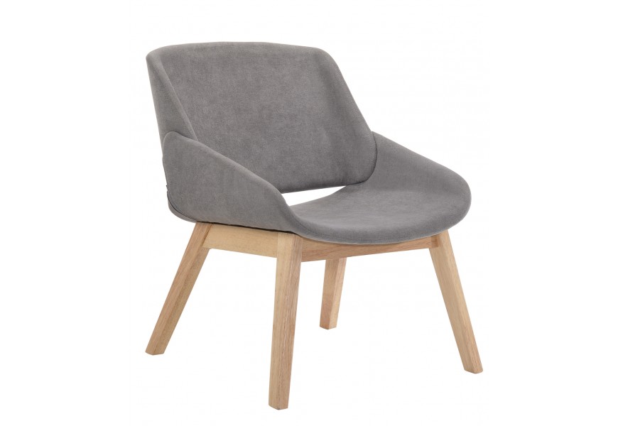 Dizajnové škandinávské kreslo Nordica Clara so sivým čalúnením so svetlo hnedými masívnymi nožičkami dub 69cm