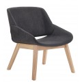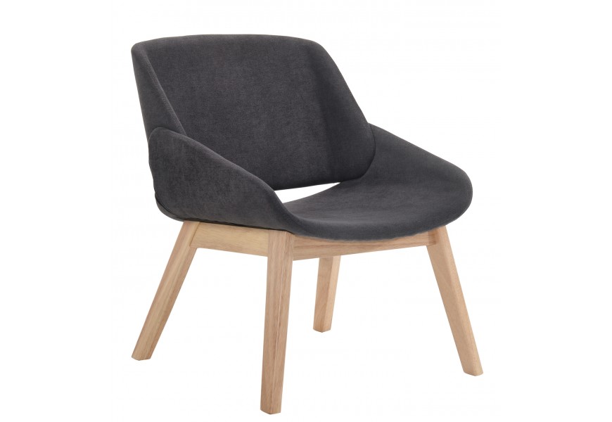Škandinávske kreslo Nordica Clara v zaoblenom tvare so svetlo hnedými masívnymi nožičkami a tmavo sivým čalúnením 69cm
