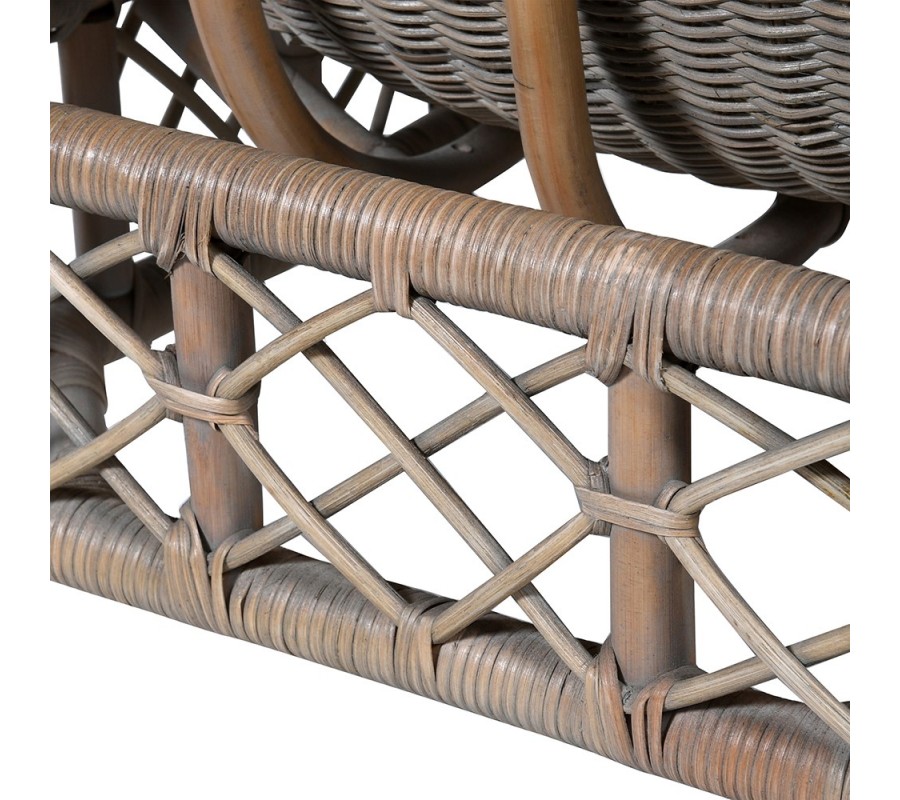 Kreslo z kolekcie Ratana je ako stvorené na chvíle plné zaslúženého oddychu po náročnom dni. Vyhotovenie s dominantným hustým ratanovým výpletom v neutrálnej kapučínovej hnedej farbe vás poteší multifunkčnosťou- bude sa totiž perfektne hodiť do priestorov nie len v zemitých odtieňoch, rovnako zažiari aj v tmavších interiéroch s masívnymi komodami a konferenčnými stolíkom. Kreslo Ratana si svoje miesto rozhodne nájde v priestanných obývačkách, vstupných halách alebo krytých zimných záhradách, kde si vychutnáte relaxačný potenciál kresla naplno- stabilná konštrukcia kresla ponúka naozaj štedré rozmery sedacej časti. Operadlo na chrbát sa nesie v oblých líniách s ukončením v opierkach na ruky hranatého tvaru. Elegantný hustý ratanový výplet dopĺňa redšie krížiace sa pletenie v spodnej časti sedacej časti v oblasti štyroch nožičiek. Navyše vás poteší, že kreslo je unikátnym ručne vyrobeným kúskom. V kombinácii s huňatou dekou či hačkovaným podsedákom v krémovej alebo vanilkovej farbe poteší nie len dizajnom, ale aj pohodlnými podmienkami, ktoré vám poskytuje.