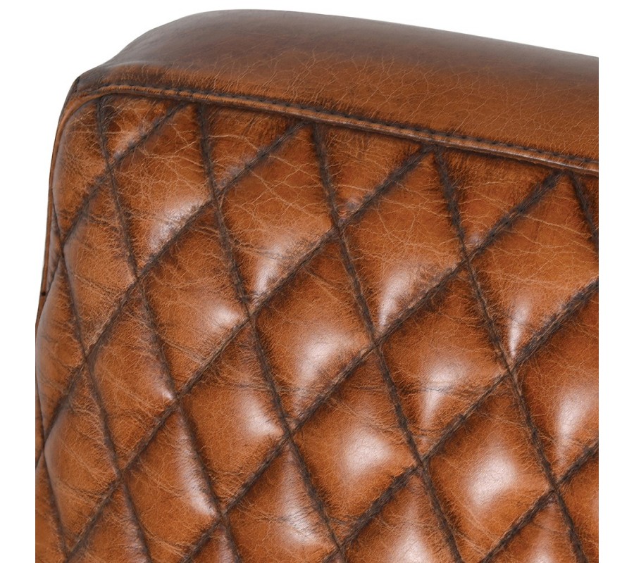Luxusné kreslo Serhy vyniká svojím unikátnym vzhľadom kombinujúcim retro štýl s nádychom štýlu art-deco a industriálnym štýlom. Retro kreslo Serhy sa pýši kvalitným svetlo hnedým čalúnením z pravej kože, ktoré je obohatené o dizajnové prešívanie v tvare diamantu na sedacej časti a prednej časti chrbtovej opierky. Kožené kreslo Serhy disponuje bohatým polstrovaním, čo dodá komfort pri sedení v kombinácií so zaoblenými bočnými opierkami. Kreslo Serhy je zasadené do čiernej kovovej konštrukcie držiacej bočné opierky, ktoré taktiež fungujú ako spojené nožičky, čo vytvára jemný nádych spomenutého art-deco štýlu. Luxusné kreslo Serhy je krásnym koženým kúskom do obývačky s nádychom retro a vintage štýlu, pričom vynikne najmä v kombinácií s čiernymi kovovými doplnkami a v tmavšie zariadených miestnostiach so svetlo sivými stenami.