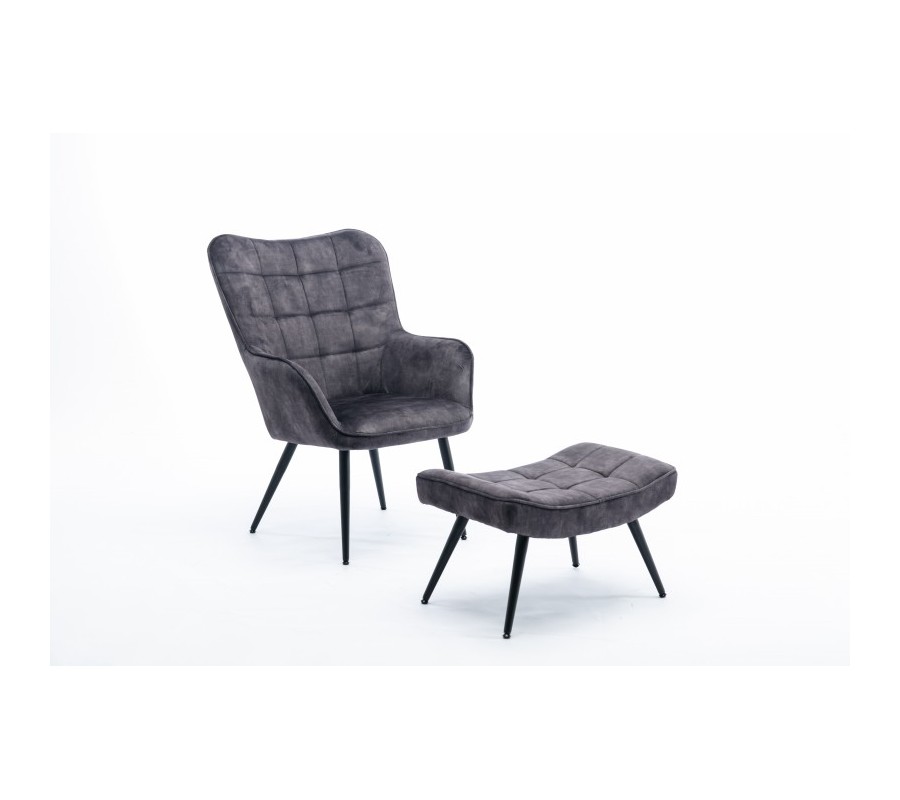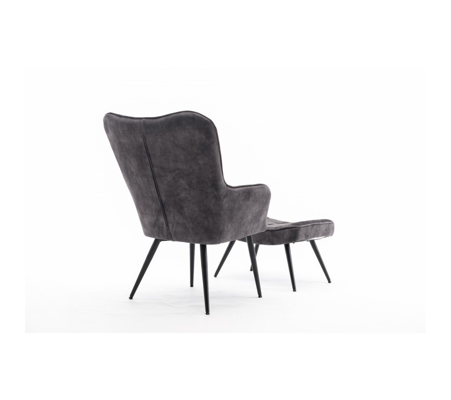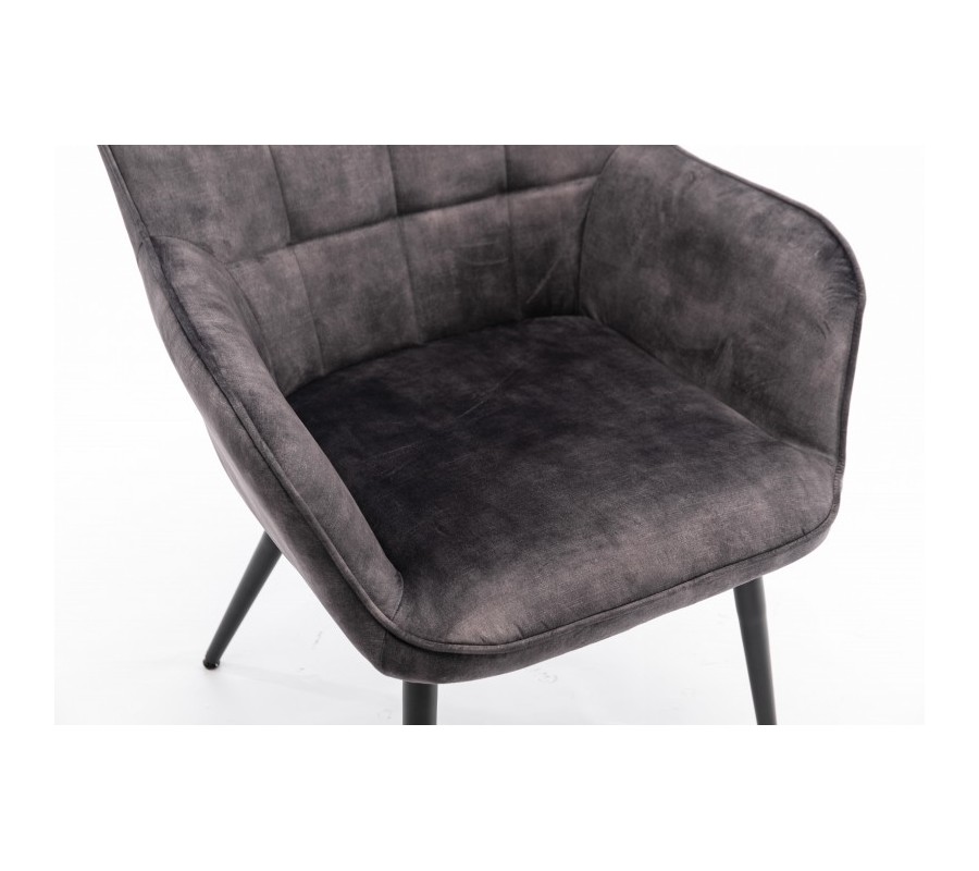 Moderné kreslo Scandinavia s tmavosivým prešíavným čalúnením zo zamatu a čiernymi kovovými nohami 99cm