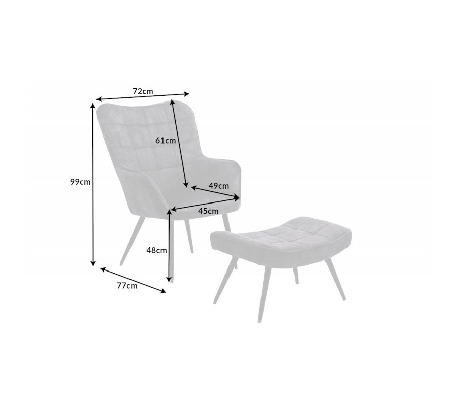 Štýlové kreslo Scandinavia sa nesie v univerzálnej tmavosivej farbe. Tmavá farebnosť v kombinácii s jednoduchými tvarmi a dôrazom na funkčnosť mu dáva nadčasový moderný vzhľad, vďaka čomu je skvelým adeptom na zariadenie dizajnových priestorov kaviarní, beauty salónov či súkromných priestorov vašej modernej obývačky. Kreslo Scandinavia vám zaručuje dokonalé pohodlie vďaka príjemnému zamatovému poťahu s dizajnovým prešívaním, vysokému tvarovanému operadlu a praktickým podrúčkam. Vďaka jemne zošikmeným čiernym kovovým nožičkám dostáva kreslo výbornú stabilitu a zároveň je tak umocnený moderný vzhľad. Vďaka materiálovej a farebnej kombinácii je kreslo Scandinavia vhodným kúskom najmä na doplnenie moderne, industriálne či škandinávsky ladených priestorov. Skvelú kombináciu vytvorí napríklad s jednoduchým dreveným alebo kovovým konferenčným stolíkom, taburetkou s rovnomennej kolekcie či s výraznými tmavými doplnkami z kovu alebo prírodných materiálov.