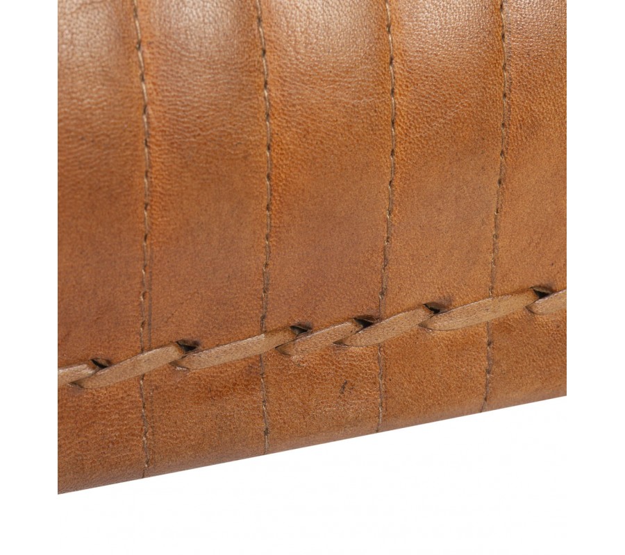 Štýlové kreslo Marione II sa vyznačuje svojím dizajnovým prepojením prkov industriálneho a vintage štýlu. Tento kúsok dáva dôraz na pohodlnosť a komfort a je tak skvelým spoločníkom na doplnenie obývačiek či kancelárskych priestorov. Sedacia časť a operadlo disponujú pohodlným čalúnením z pravej kože nesúcim sa v naturálnej hnedej farbe, pričom sú po bokoch lemované dizajnovým zdobením v podobe kovových cvokov. Tvarovaná sedacia časť vám zaručuje stopercentný komfort a zároveň pôsobí vizuálne zaujímavo. Čierna kovová konštrukcia a nohy vytvárajú unikátny industriálny nádych, ktorý je umocnený masívnymi podrúčkami. Kombinácia kvalitných materiálov a univerzálnych farebných odtieňov zabezpečuje kreslo status trvácneho, nadčasového a výborne kombinovateľného kúsku, ktorý nesmie chýbať ani vo vašom interiéri! Pre vytvorenie dokonalého industriálneho efektu odporúčame kombináciu s kovovým konferenčným či pracovným stolom. Pre umocnenie ndáychu vintage zasa možno využiť rôzne textílie a nábytok z masívneho dreva.
