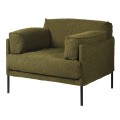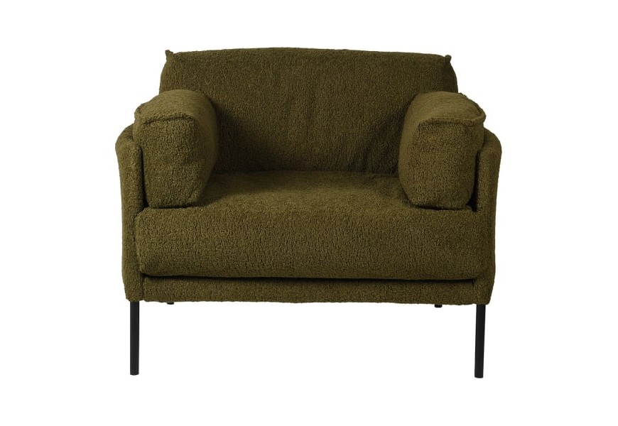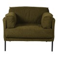 Art deco štýlové kreslo Pristina do obývačky s buklé poťahom olivovozelenej farby s čiernymi nožičkami 110cm