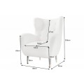 Moderné buklé kreslo Bolte s bielym poťahom a kovovými nožičkami 106cm