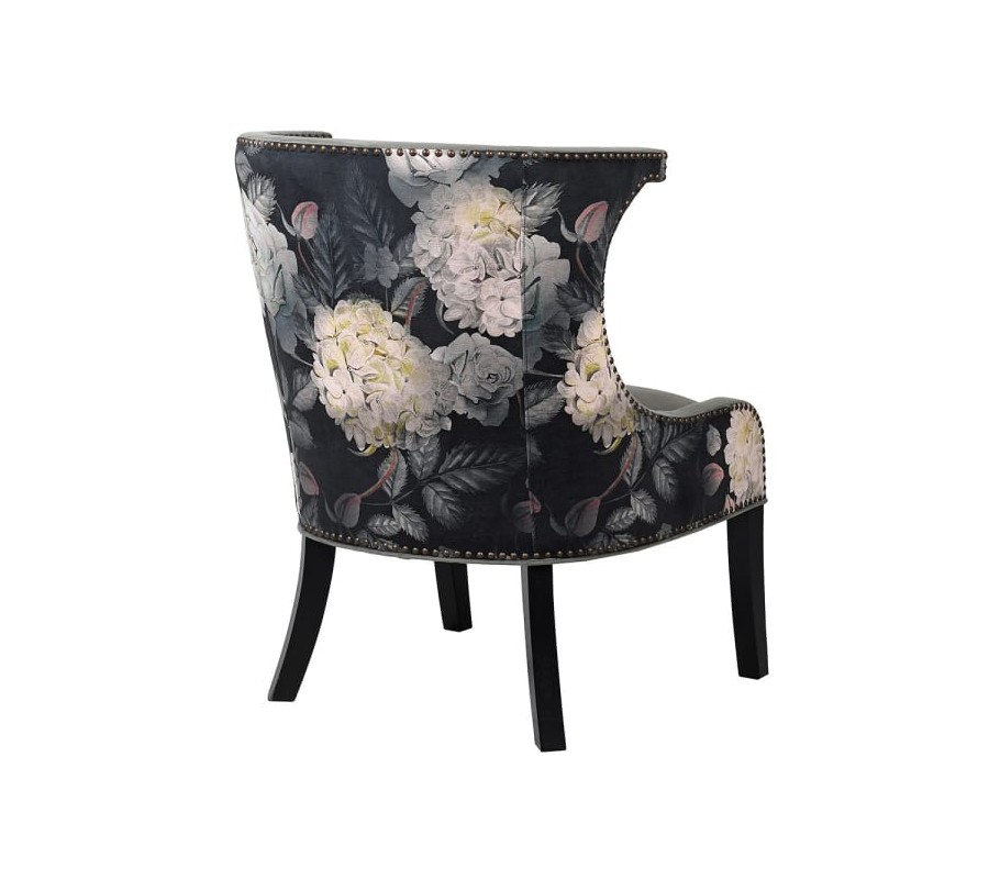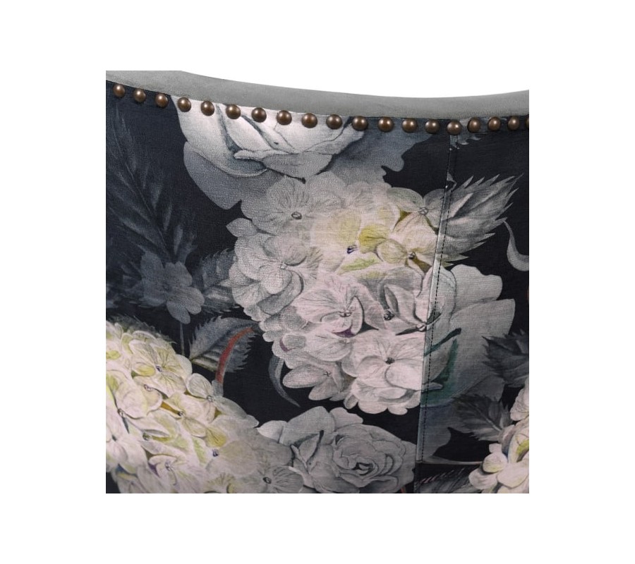 Unikátne kreslo z našej kolekcie Pruitt je dizajnovým kúskom nesúcim sa v štýle vintage. Zaujme nielen vďaka svojmu originálnemu tvaru a zaoblenému operadlu, ale tiež svojou pútavou farebnosťou využívajúcou kombináciu univerzálnej sivej s výrazným kvetovaným vzorom. Tento motív sa nachádza na zadnej strane kresla a dodáva mu nezameniteľný nádych vintage štýlu. Kreslo Pruitt taktiež kladie dôraz na komfort- tvarované operadlo pripomínajúce tvar kresla ušiak a mäkké polstrovanie vám zabezpečia dokonalé pohodlie! Celkový dizajn kresla Pruitt dotvára kovové vybíjané lemovanie v podobe mosadzných cvokov. Vkusným kontrastným prvkom sú tiež jednoduché masívne nožičky v čiernej farbe zabezpečujúce výbornú stabilitu. Kreslo Pruitt je skvelou voľbou na doladenie vintage zariadenej obývačky, pracovne či pompéznej jedálne. Predstavuje tiež elegantné riešenie do dámskych salónov, recepcií hotelov či firiem alebo tématicky ladených kaviarní, kde vytvoria dokonalú kombináciu s kovovým alebo skleneným stolíkom a bohatými dekoráciami vo vintage štýle!